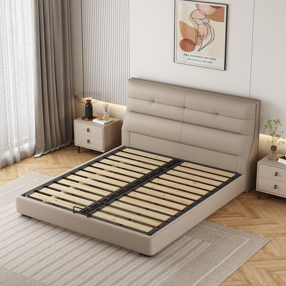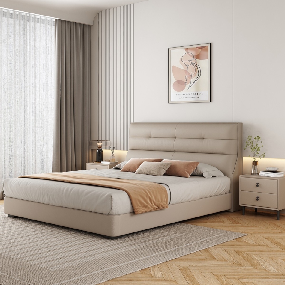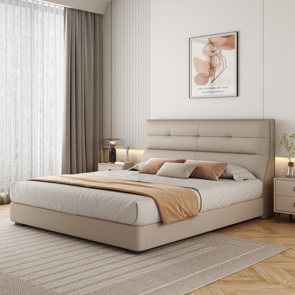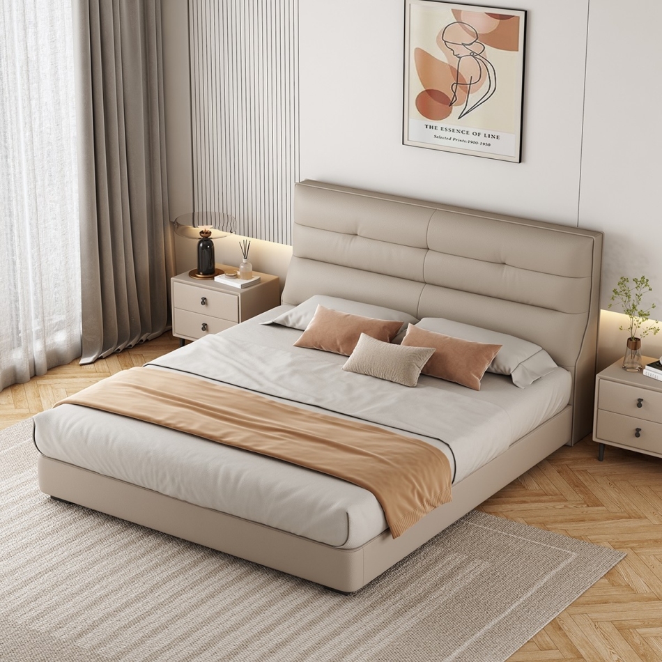 意式极简风齐边齐尾床 简约家用卧室荔枝纹头层牛皮双人床