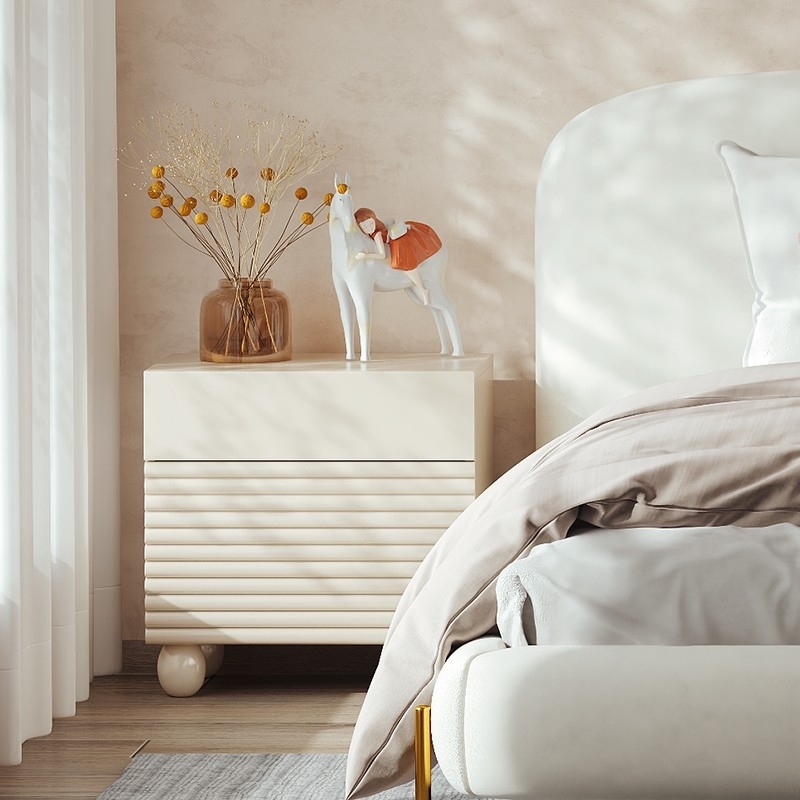 意式极简风 实木抽屉简约烤漆储物床头柜