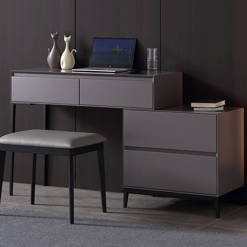 意式简约伸缩梳妆台极简时尚妆台妆凳组合(带边柜)