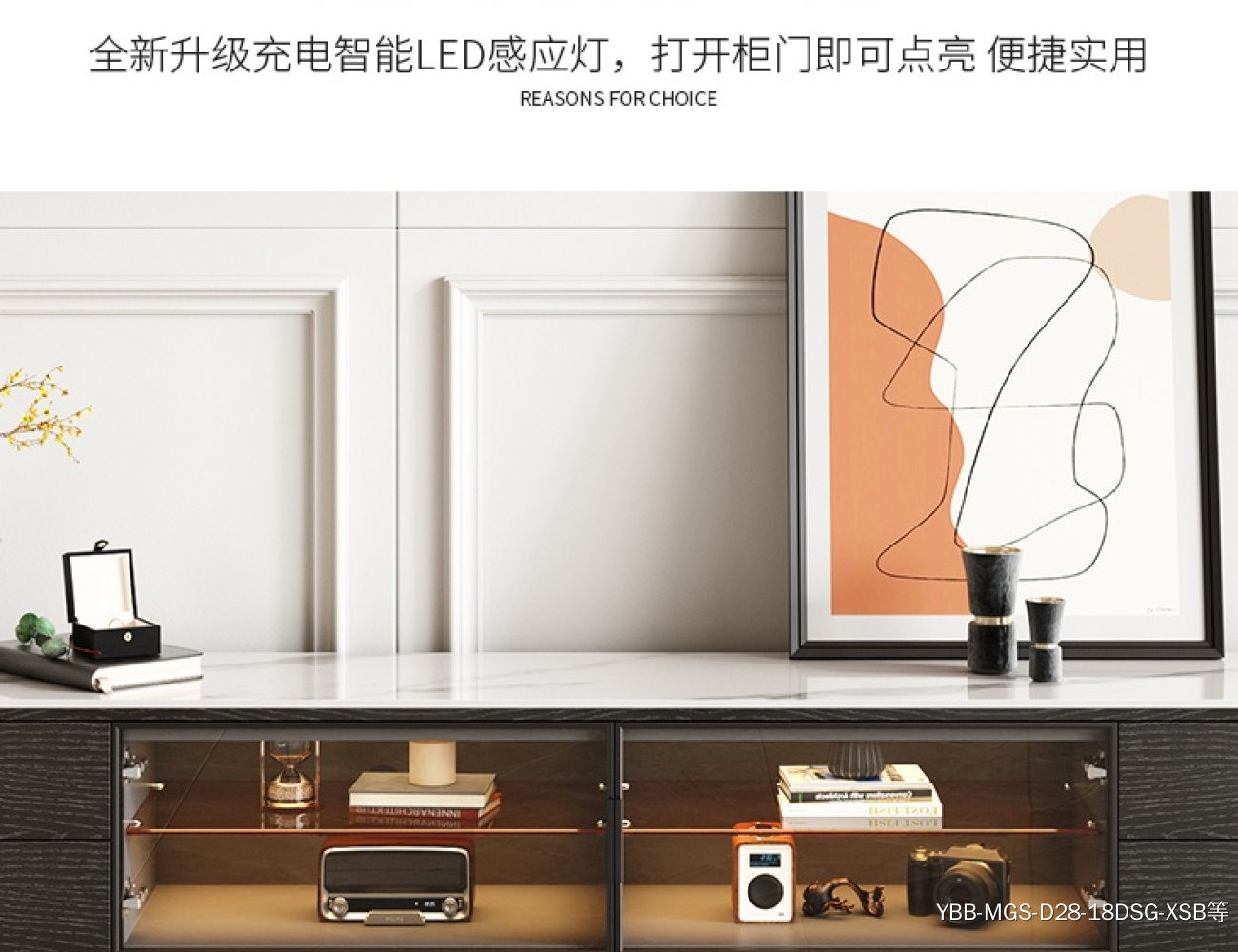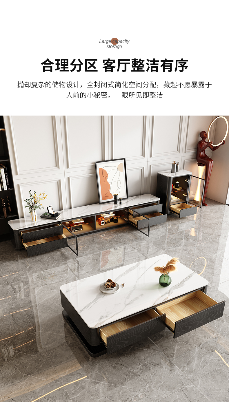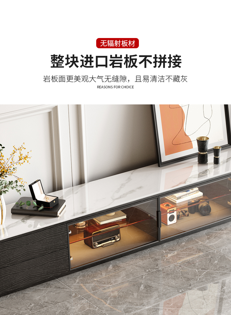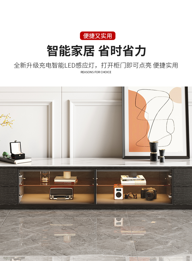 意式简约感应灯功能背景柜客厅亮光岩板电视柜 (雪山白岩板)