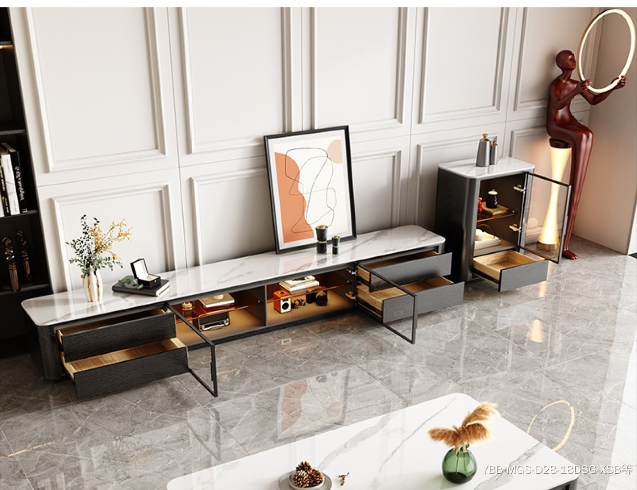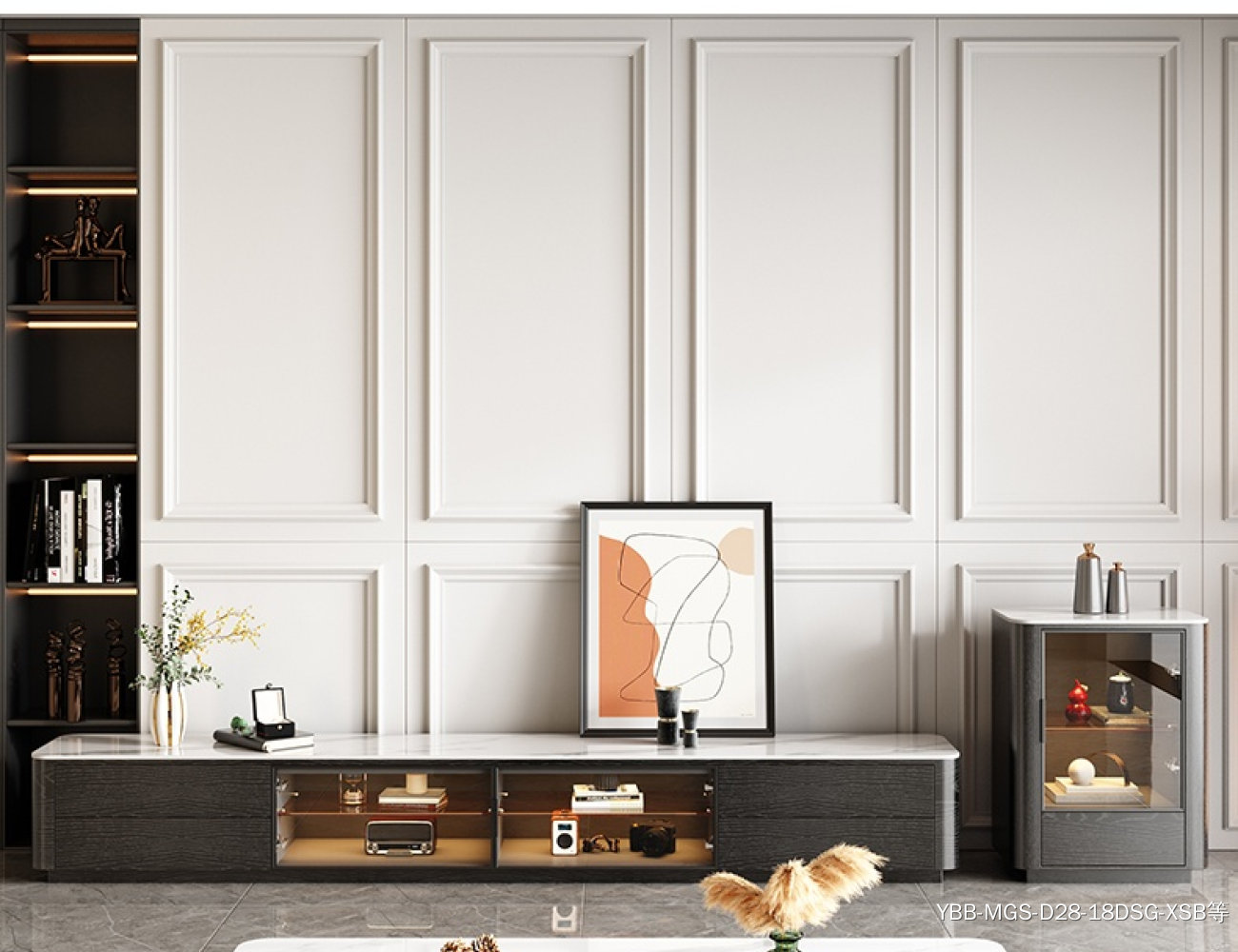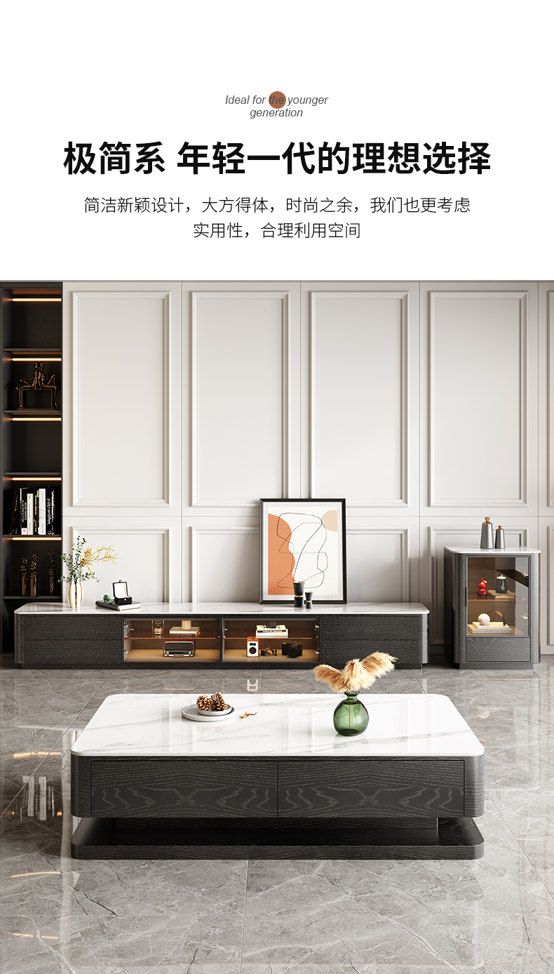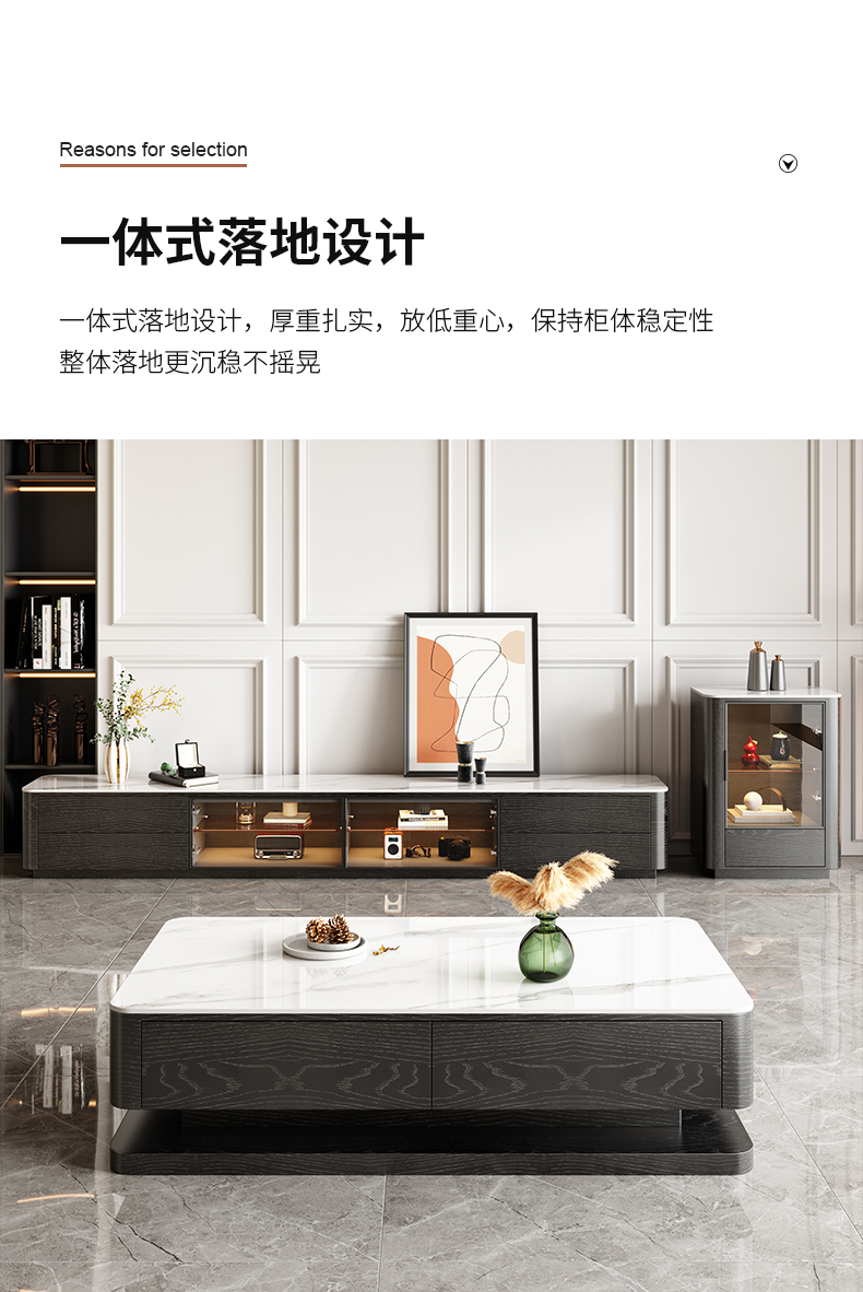 意式简约感应灯功能背景柜客厅亮光岩板电视柜 (雪山白岩板)