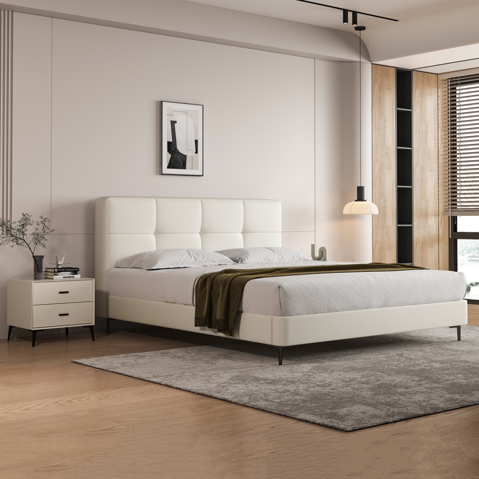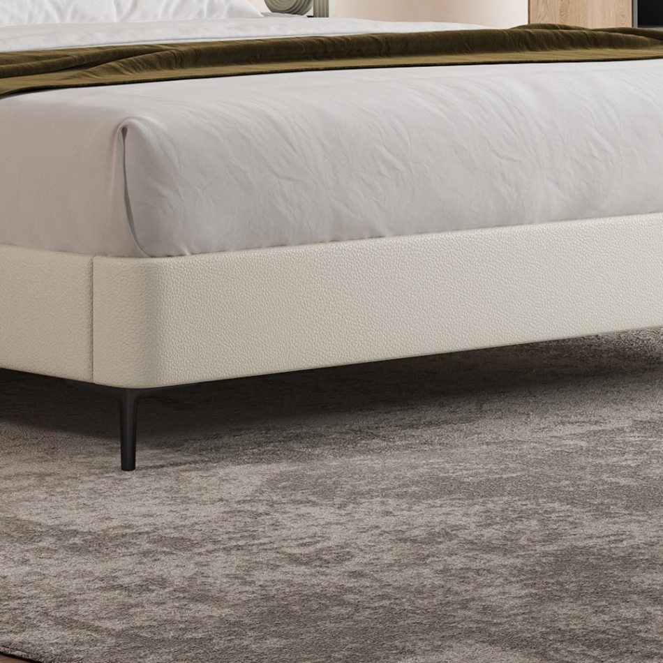 意式简约舒适头层牛皮荔枝纹软床极简风卧室双人床齐边齐尾床