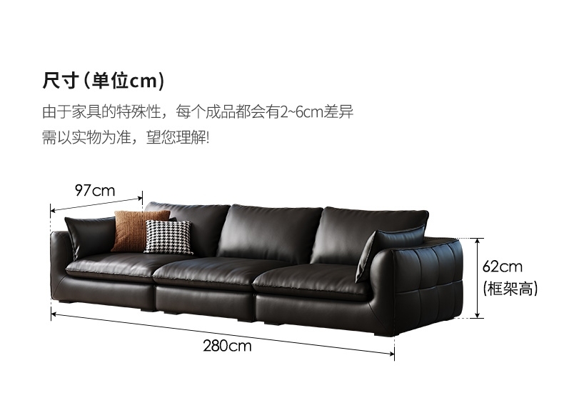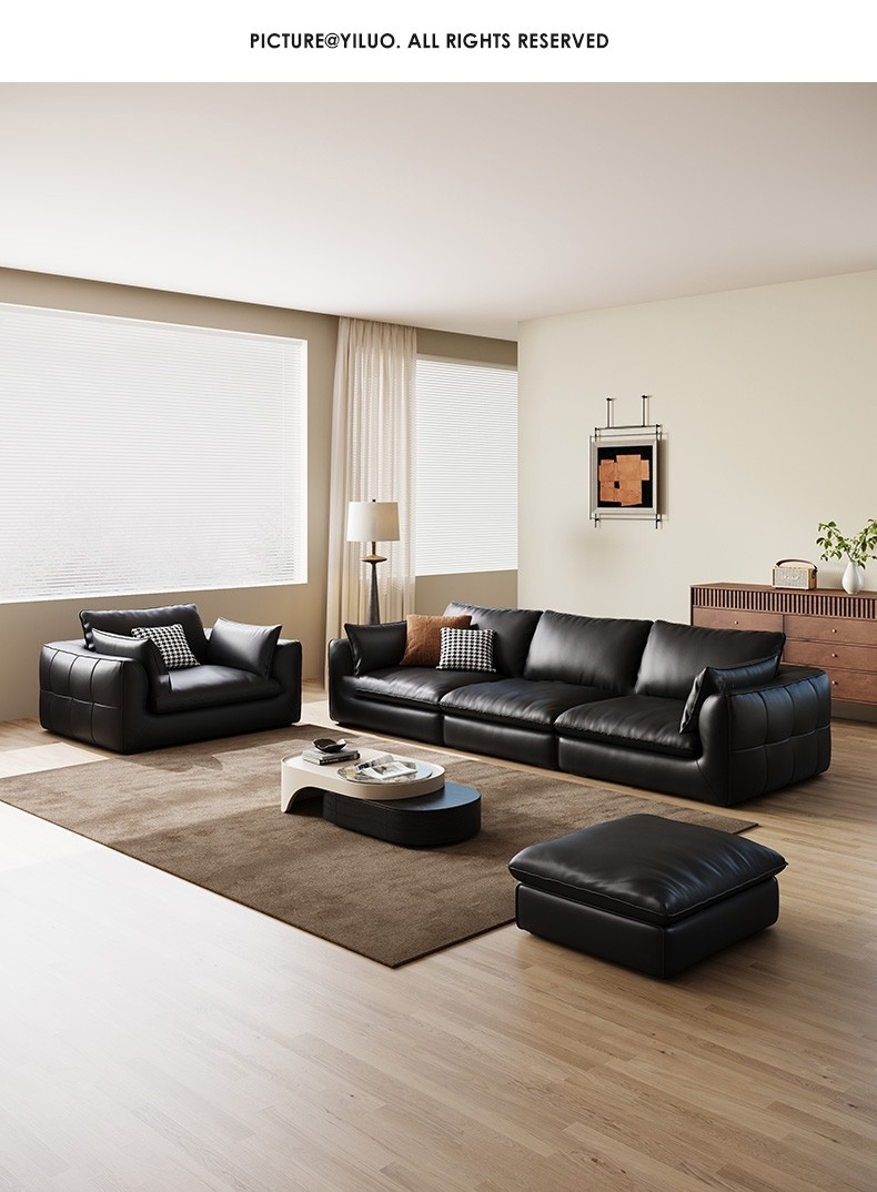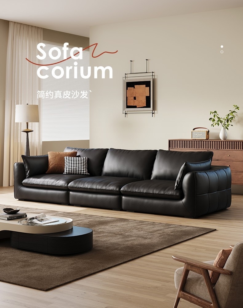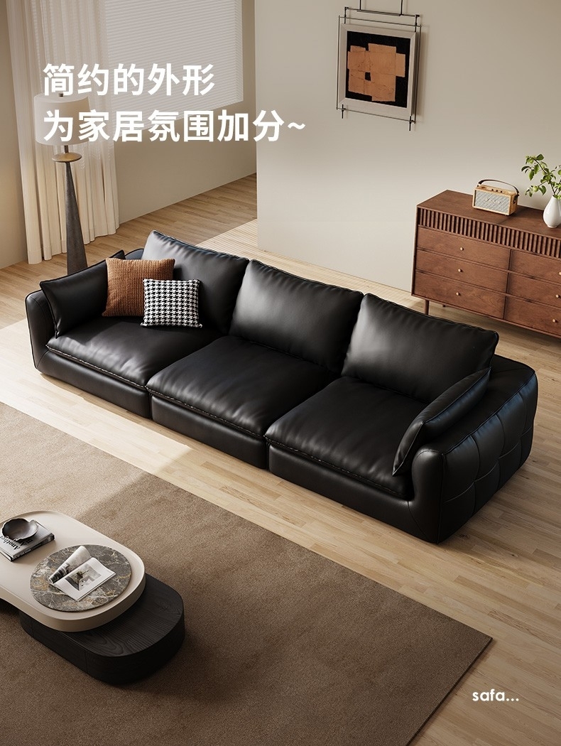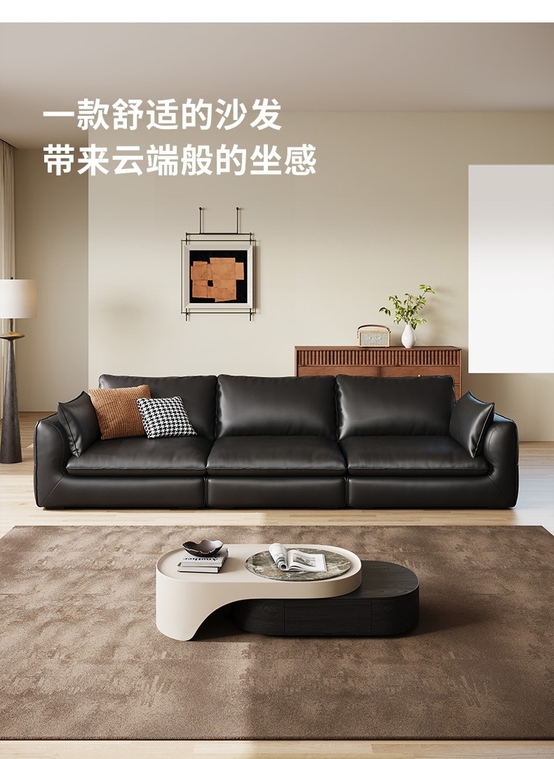 意式简约荔枝纹头层牛皮软包沙发极简风客厅直排组合沙发