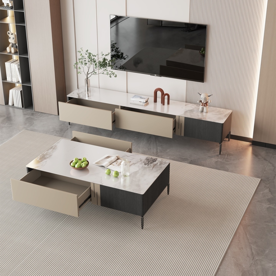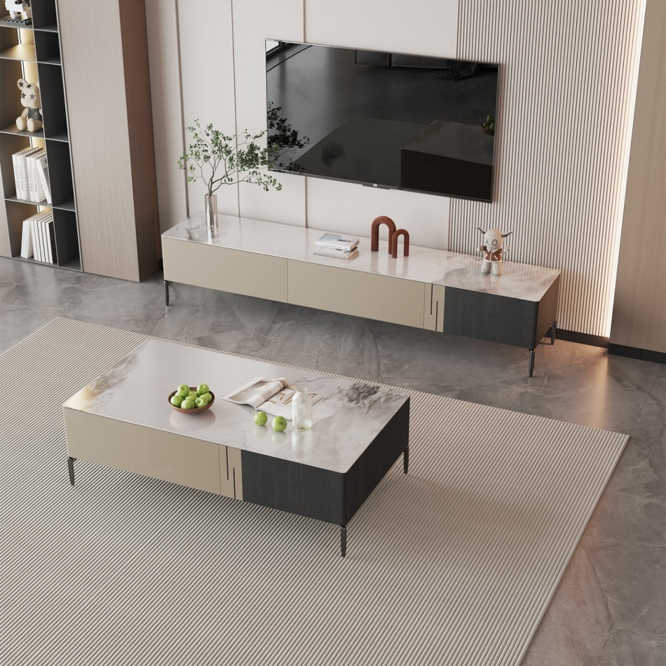 意式简约香奈儿亮光岩板地柜极简客厅收纳电视柜