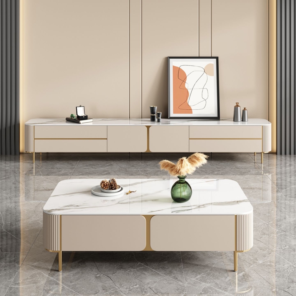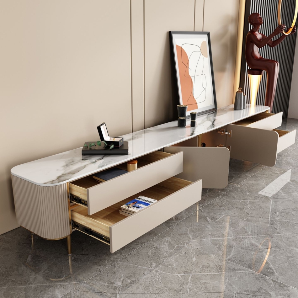 意式轻奢创意客厅储物地柜家用亮光岩板电视柜