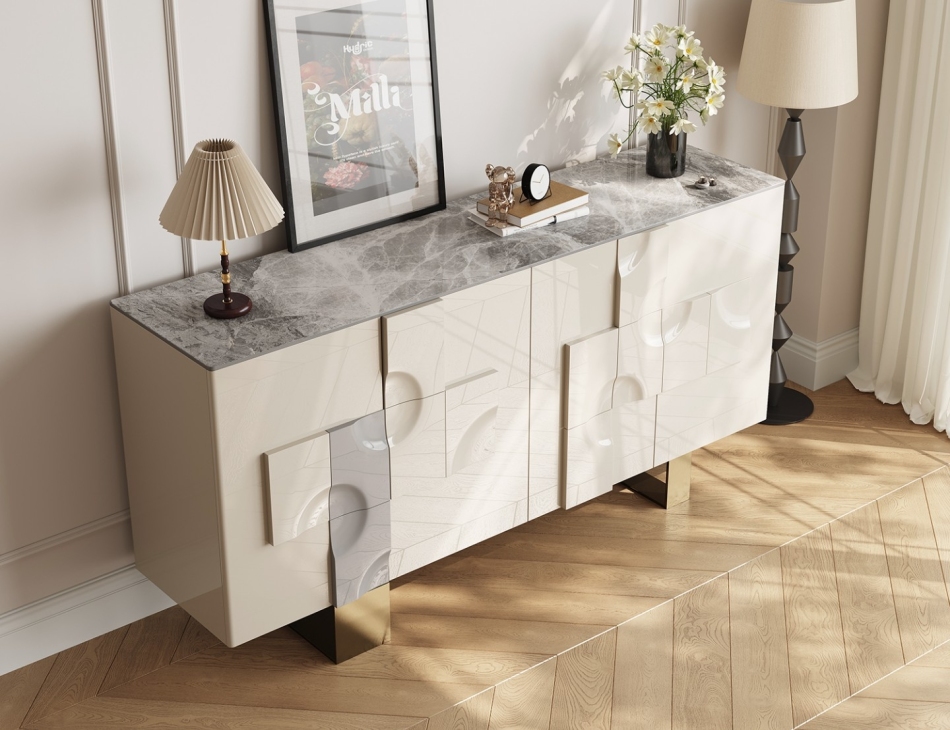 意式轻奢家用客厅餐厅收纳储物柜时尚12mm亮光意大利灰岩板面餐边柜
