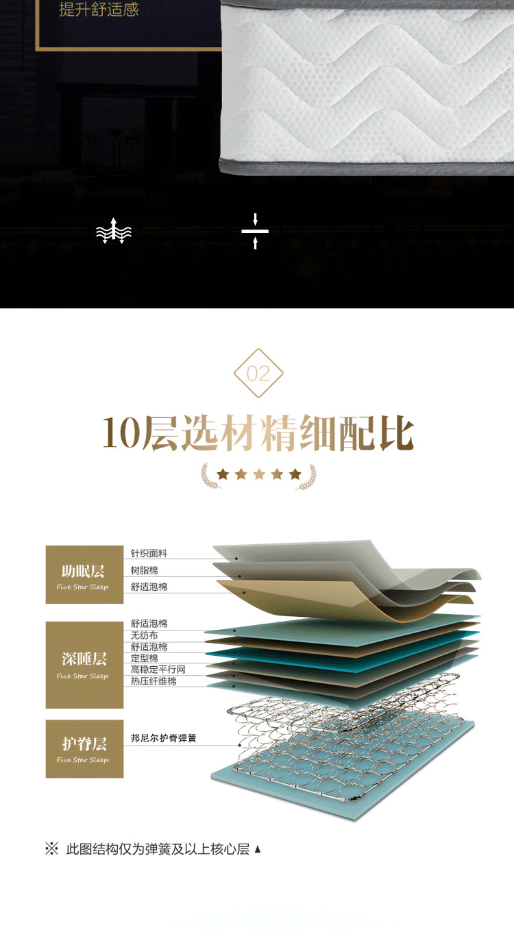 慕思集团旗下进口品牌 90%高含量天然乳胶 凝胶记忆绵 五区独立袋装弹簧 28cm床垫