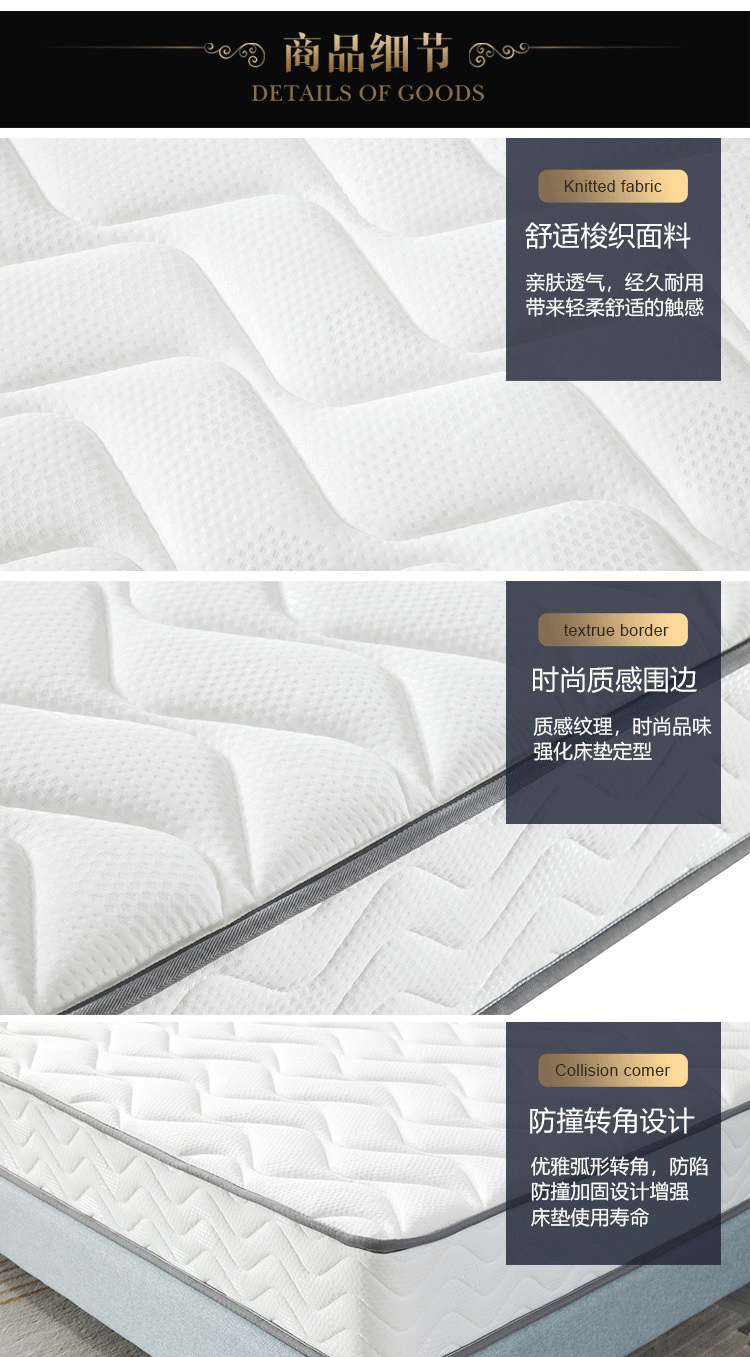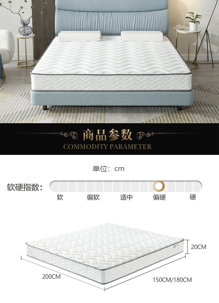 亲肤防螨面料 5公分护脊椰棕 抗折海绵 3D透气底 8CM床垫