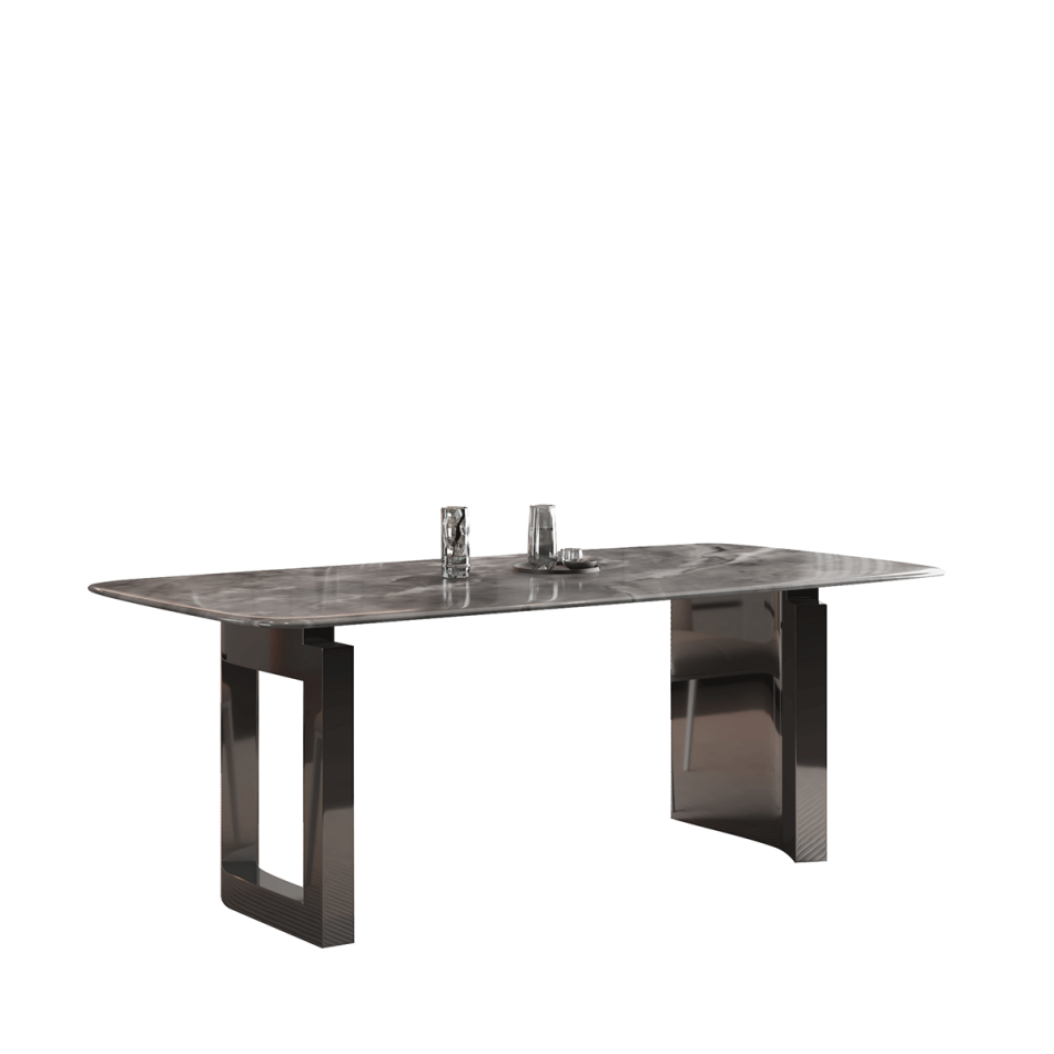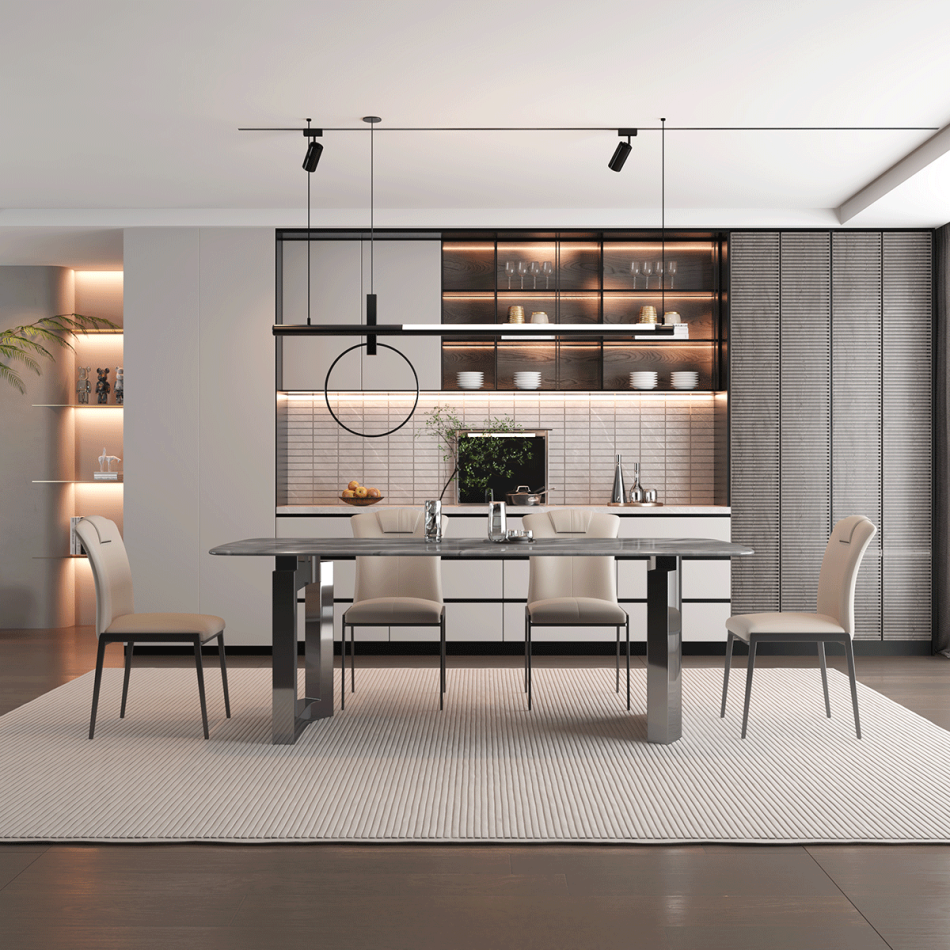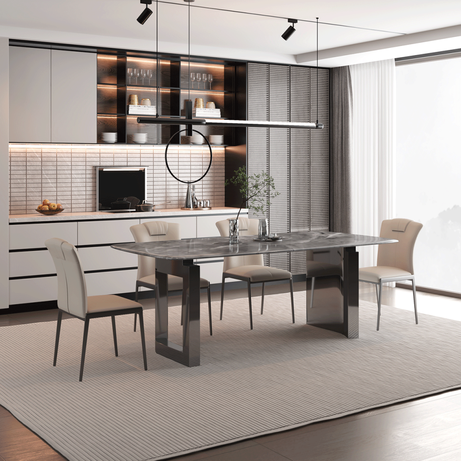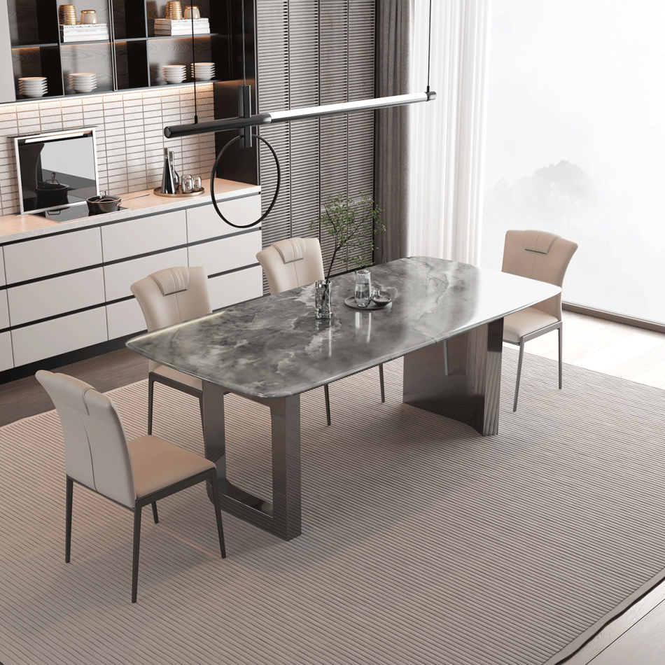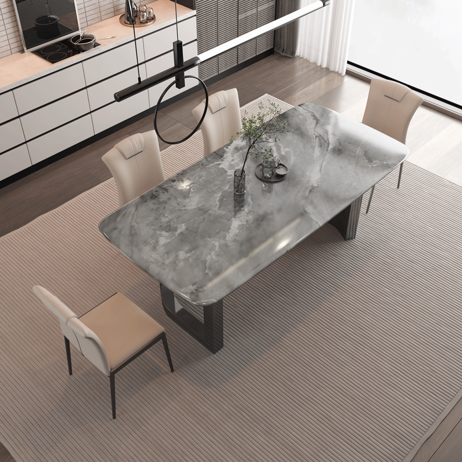 戒指餐桌 简约家用客厅小户型长方形亮光星河灰超晶石餐台