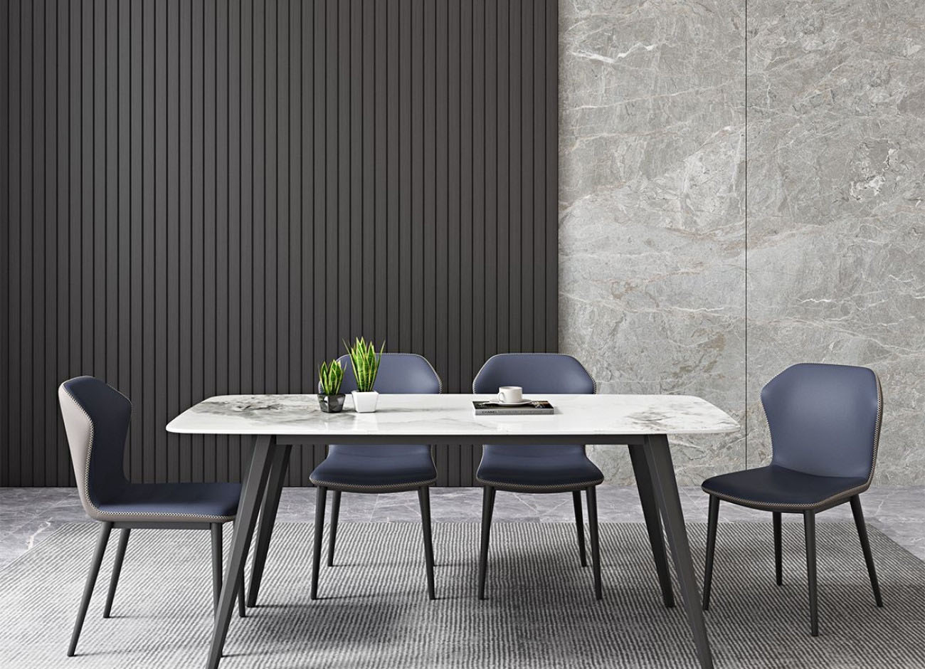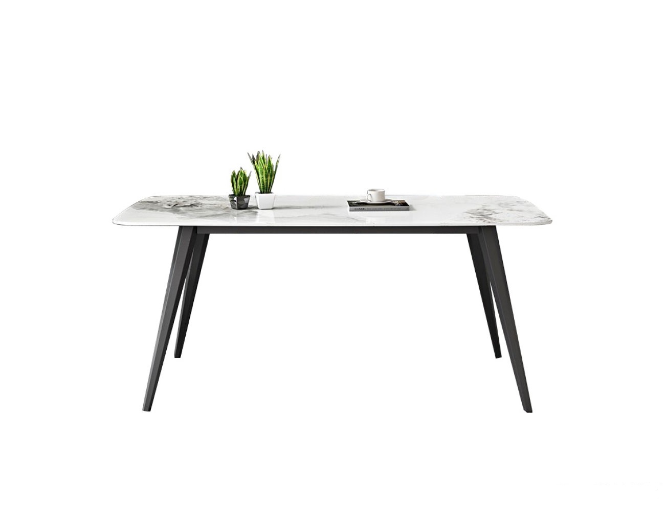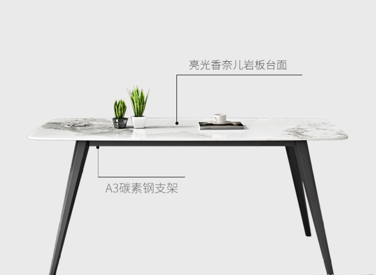 摩登系列极简风格 亮光香奈儿金岩板餐桌长方形碳素钢餐桌