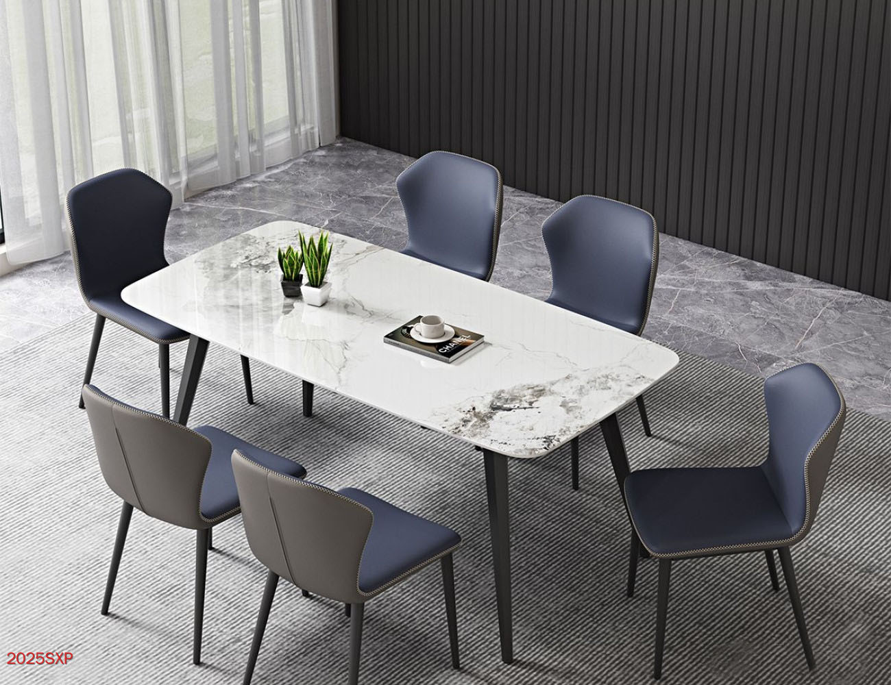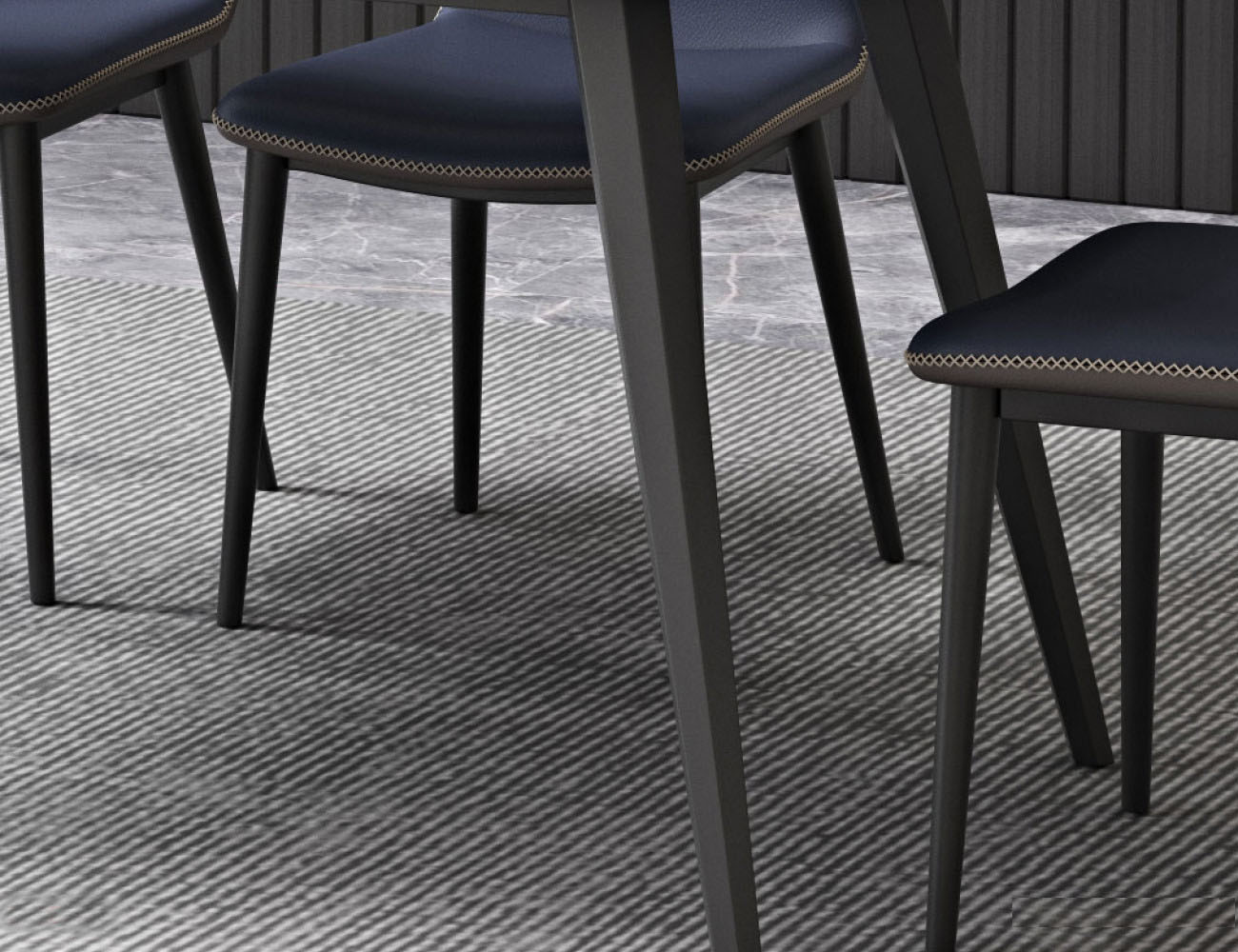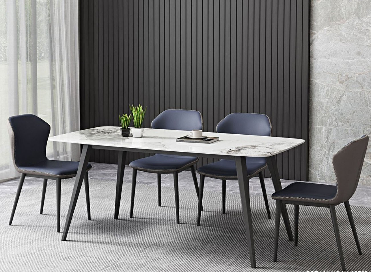 摩登系列极简风格 亮光香奈儿金岩板餐桌长方形碳素钢餐桌