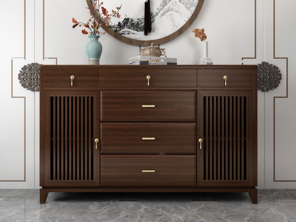 新中式小乌金木长方形多空间储物餐厅餐边柜