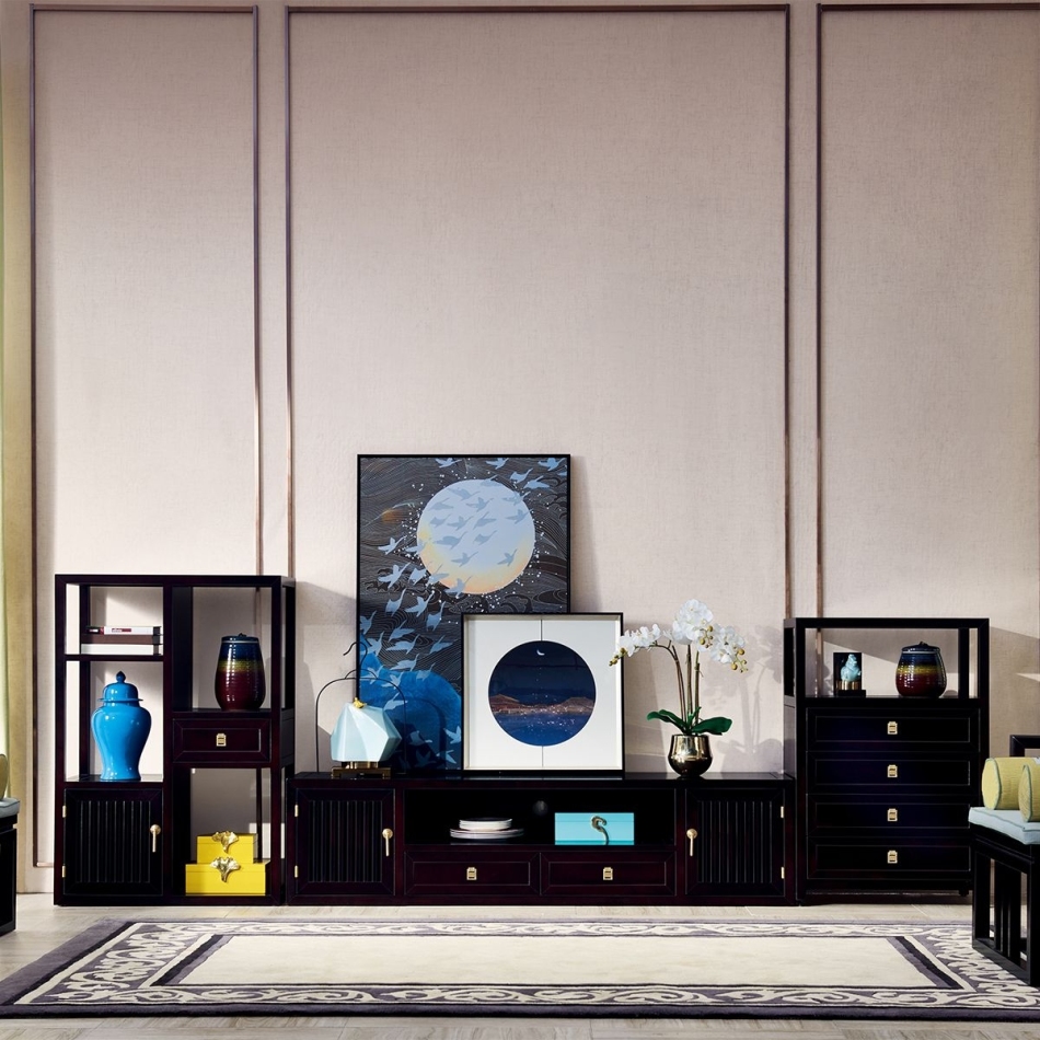 新中式系列 东南亚红檀+实木抽屉中式格栅柜装饰柜