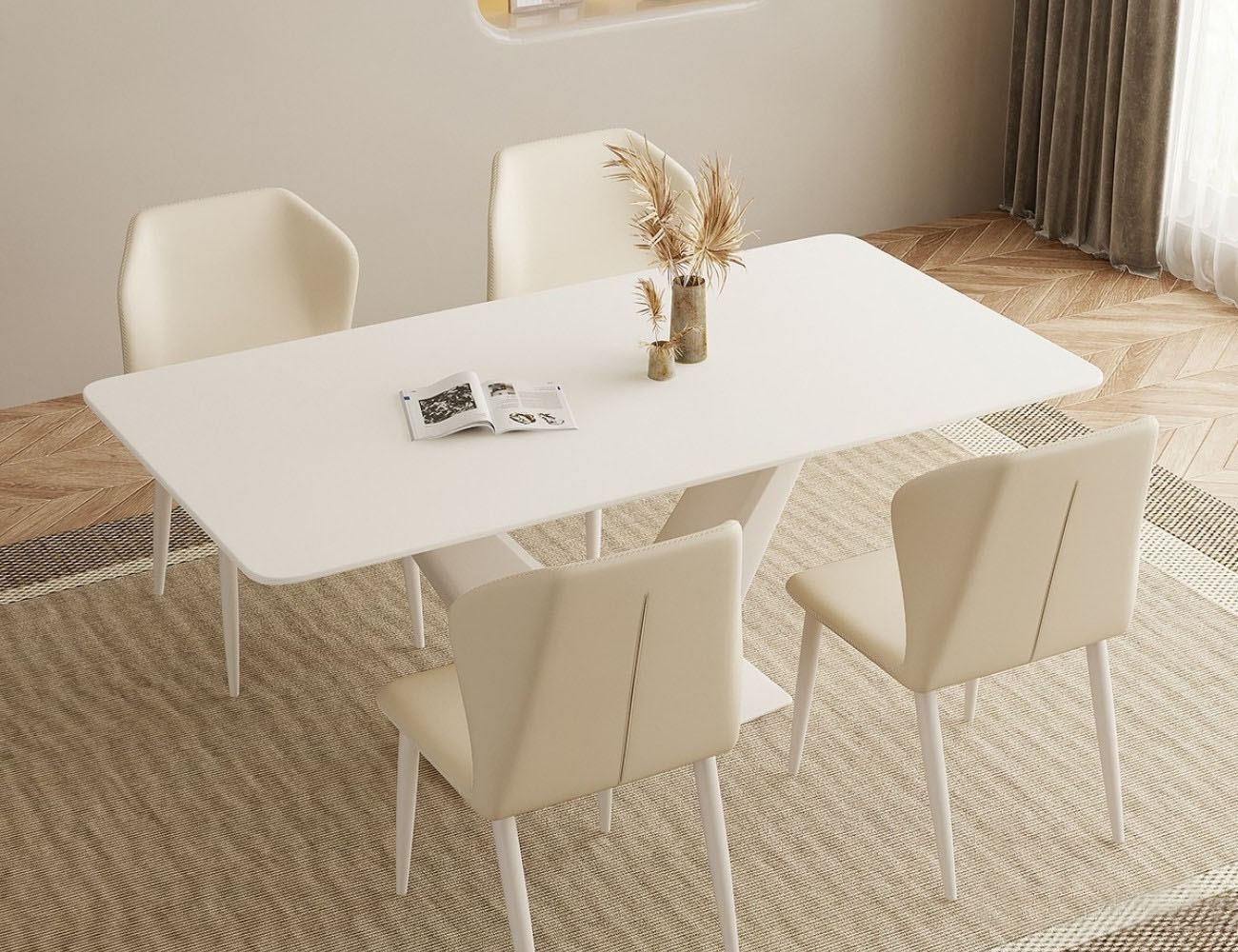 时尚奶油风 家用餐厅12mm岩板长方形餐桌