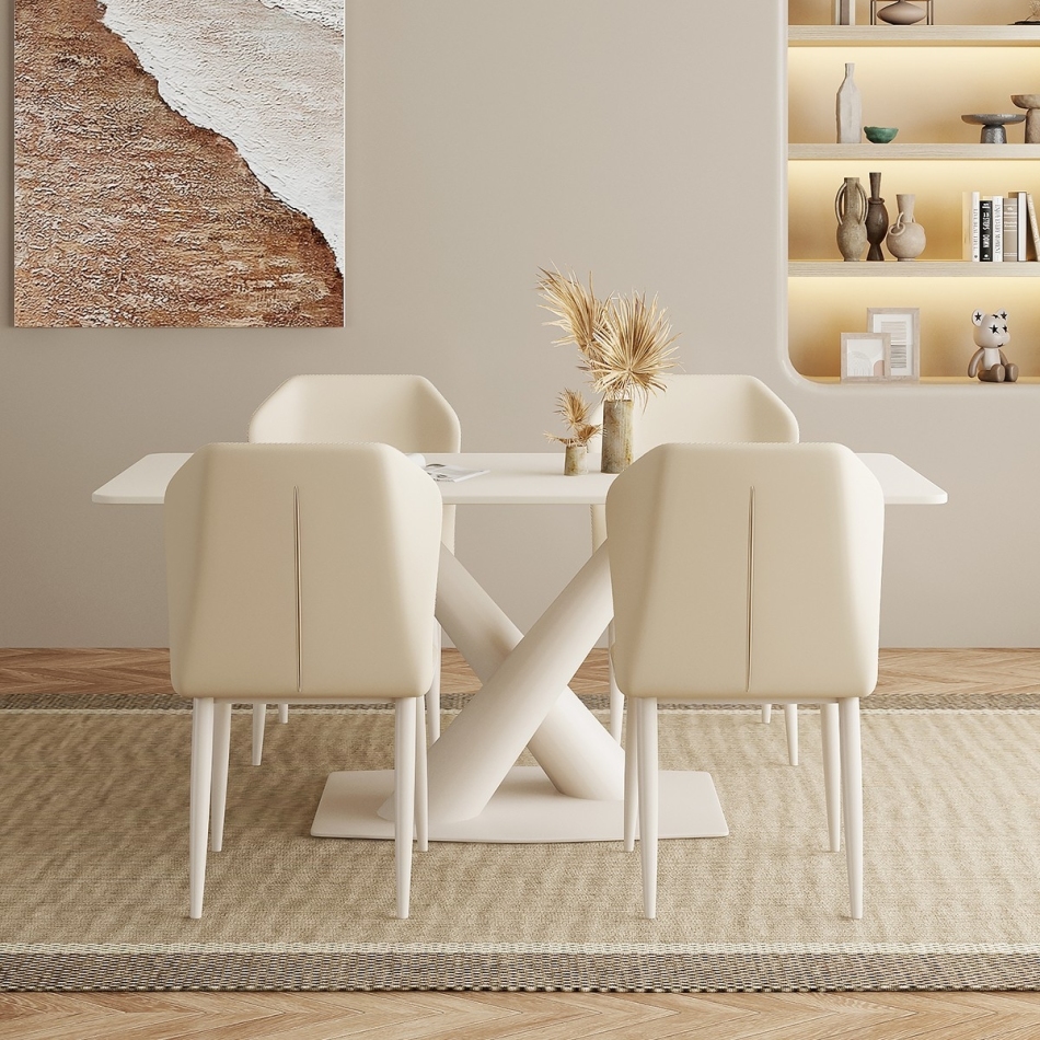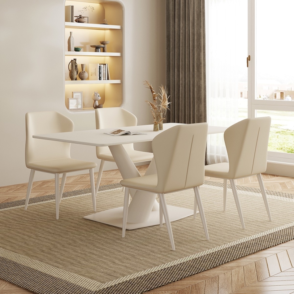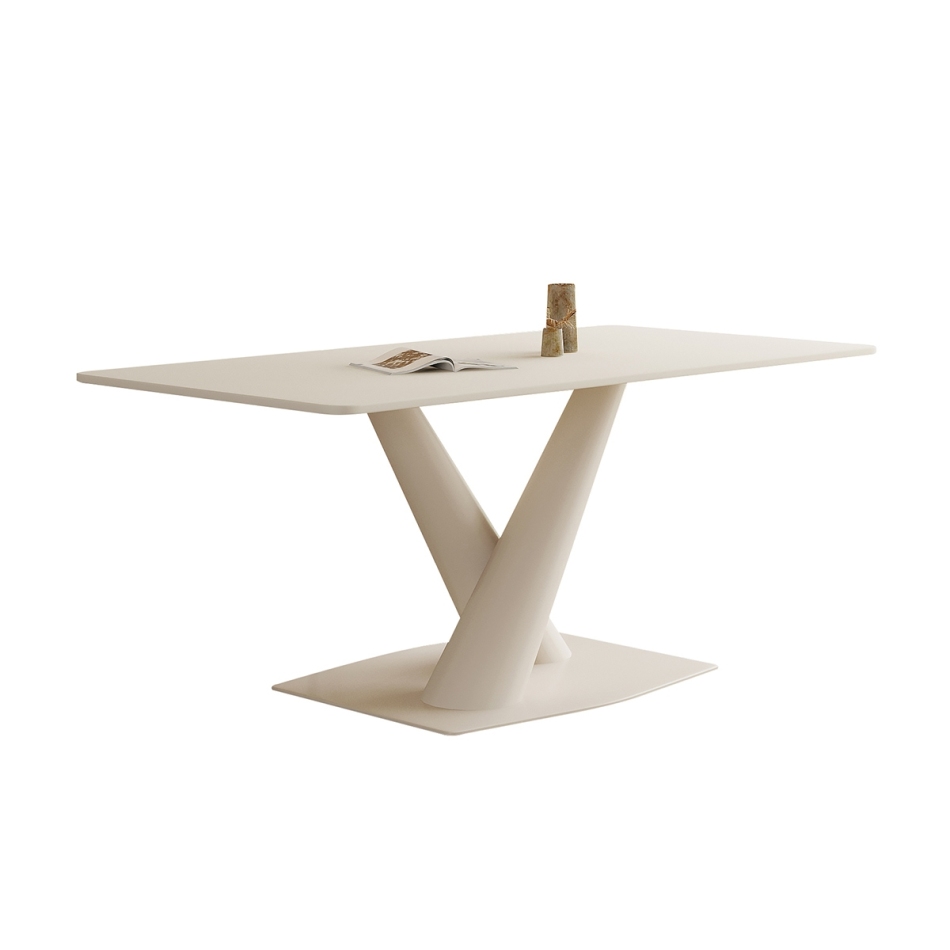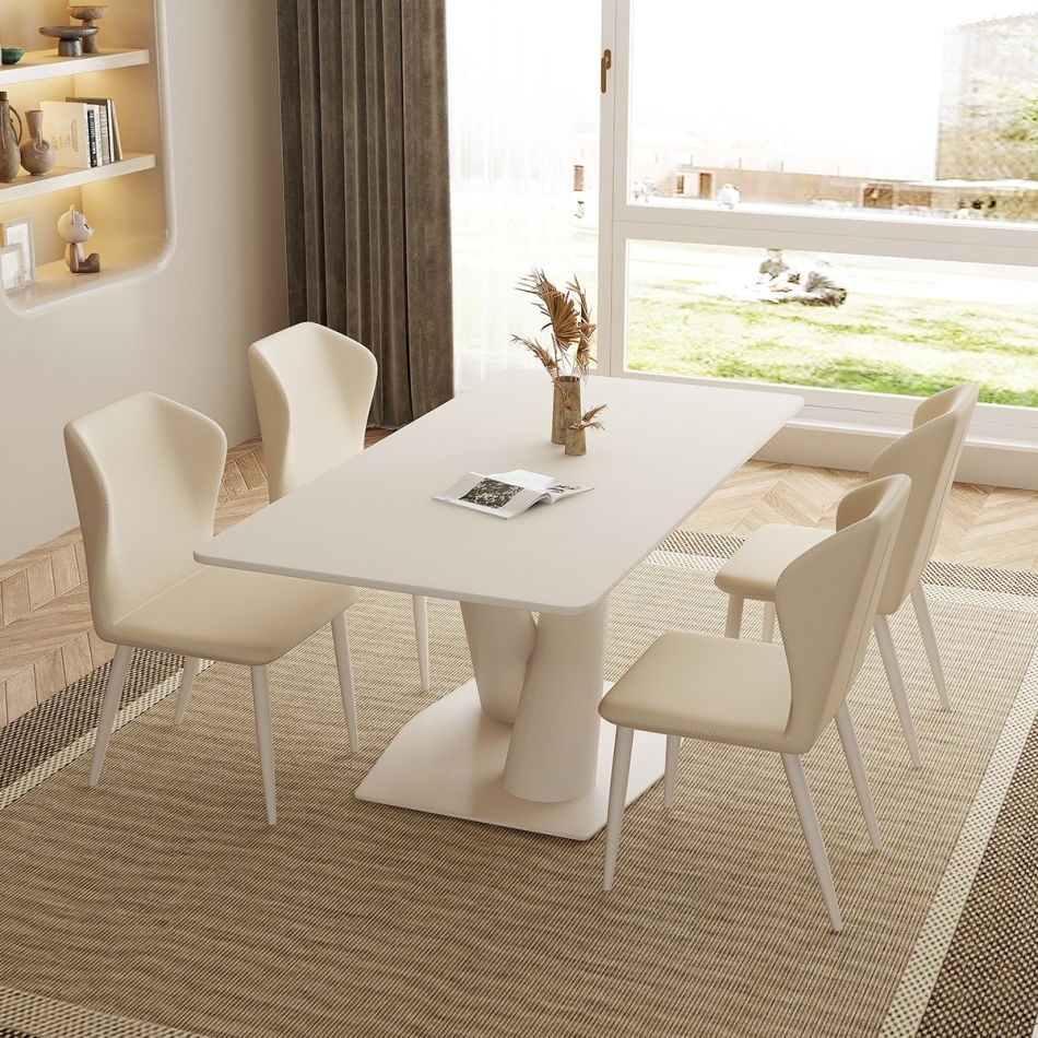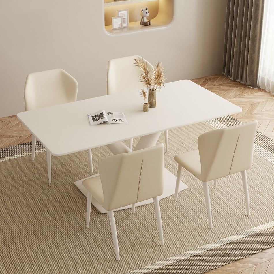 时尚奶油风 餐厅家用哑光岩板长方形餐桌