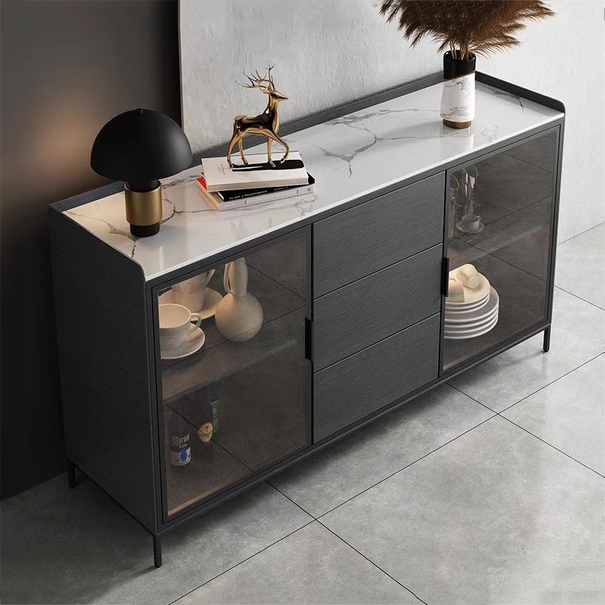 极简储物柜靠墙边柜入户玄关柜简约亮光雪花白岩板餐边柜