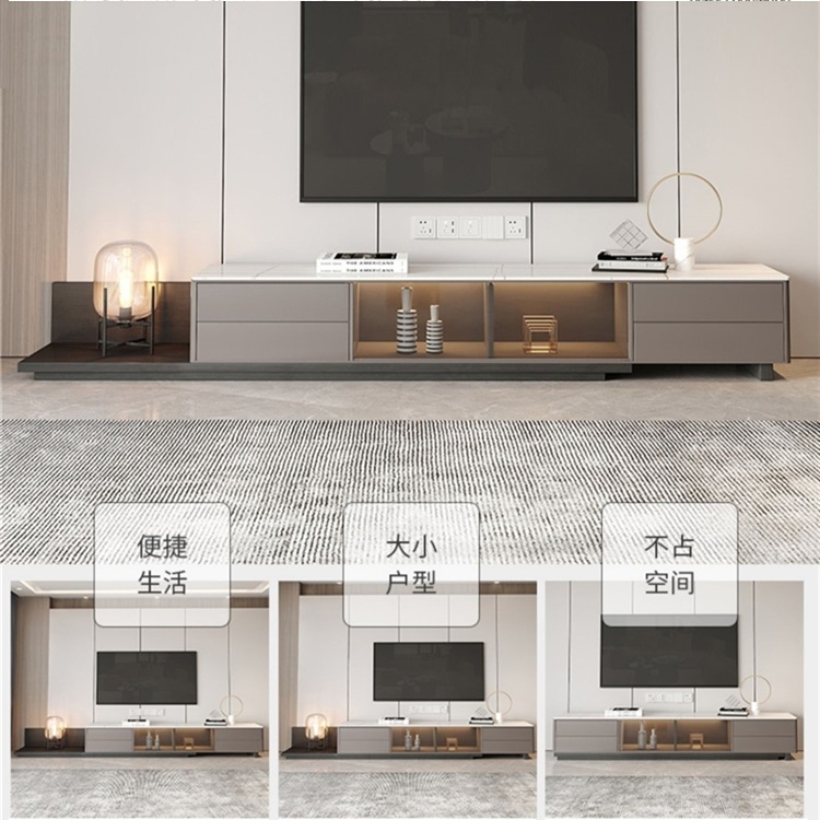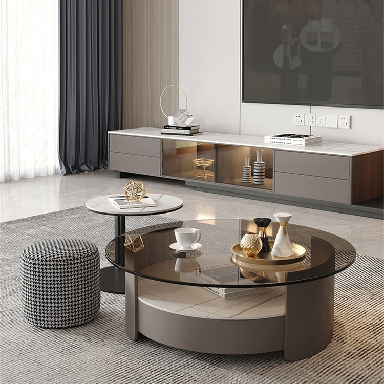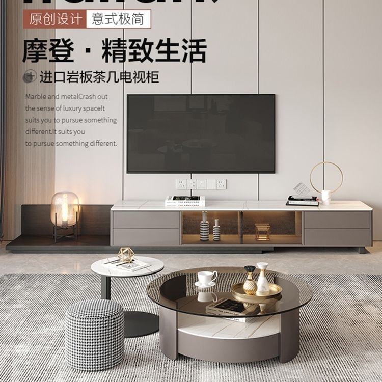 极简哑光岩板玻璃电视柜组合客厅家用圆形创意小户型地柜(劳伦白金)