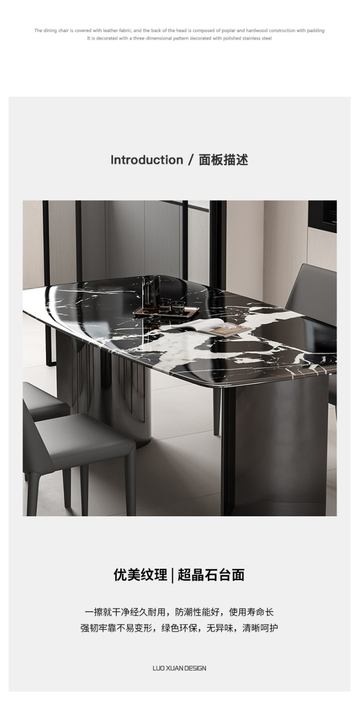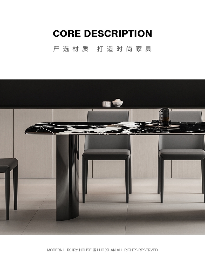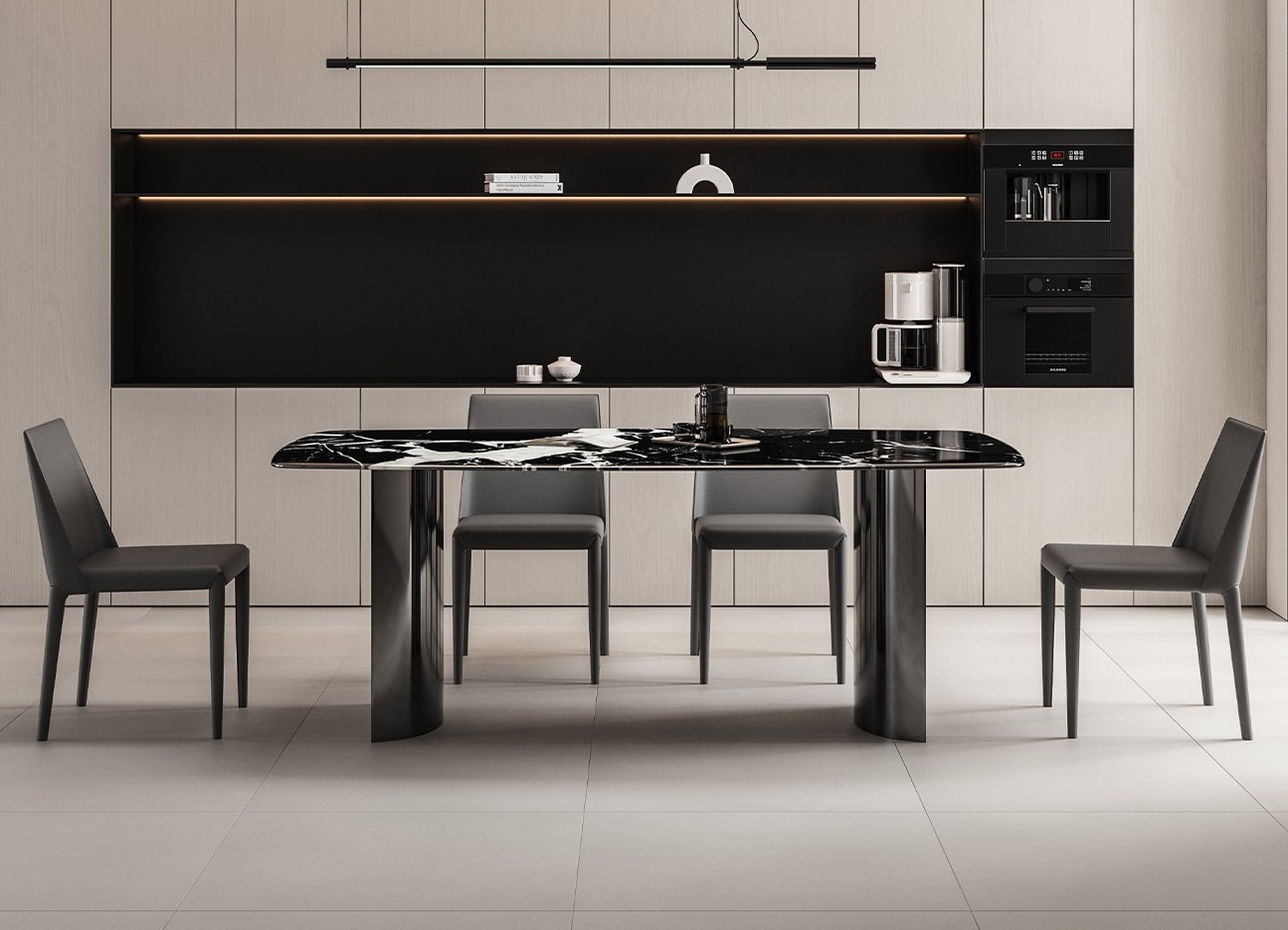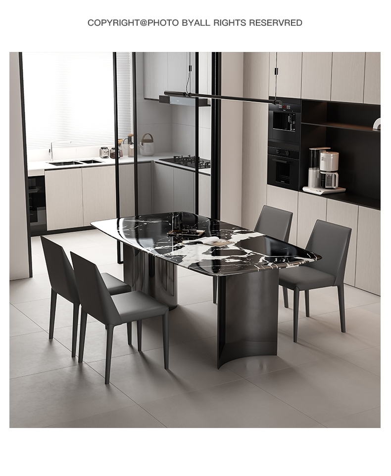 极简宝格丽黑超晶石面餐台个性多人位餐桌