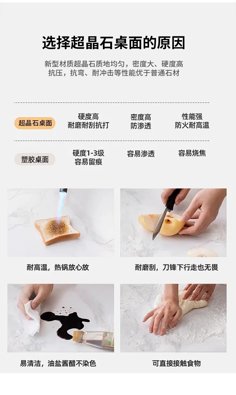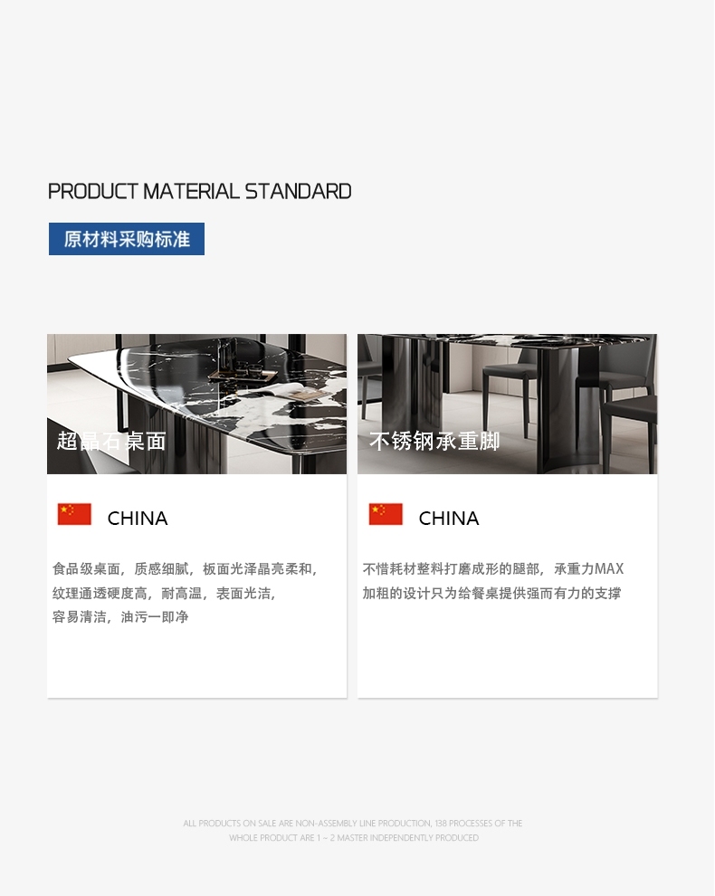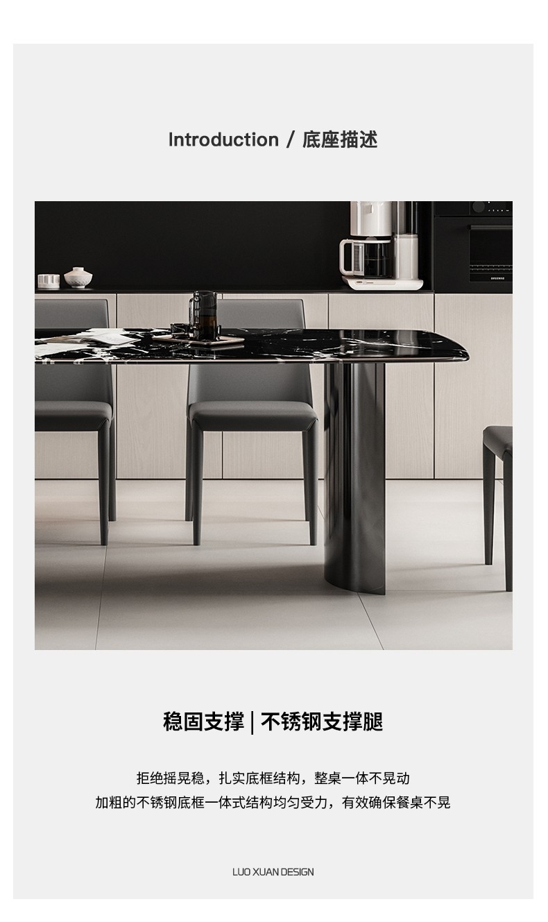 产品材质:框架:不锈钢底架+半托实木底板+台面:18mm亮光宝格丽黑超晶石