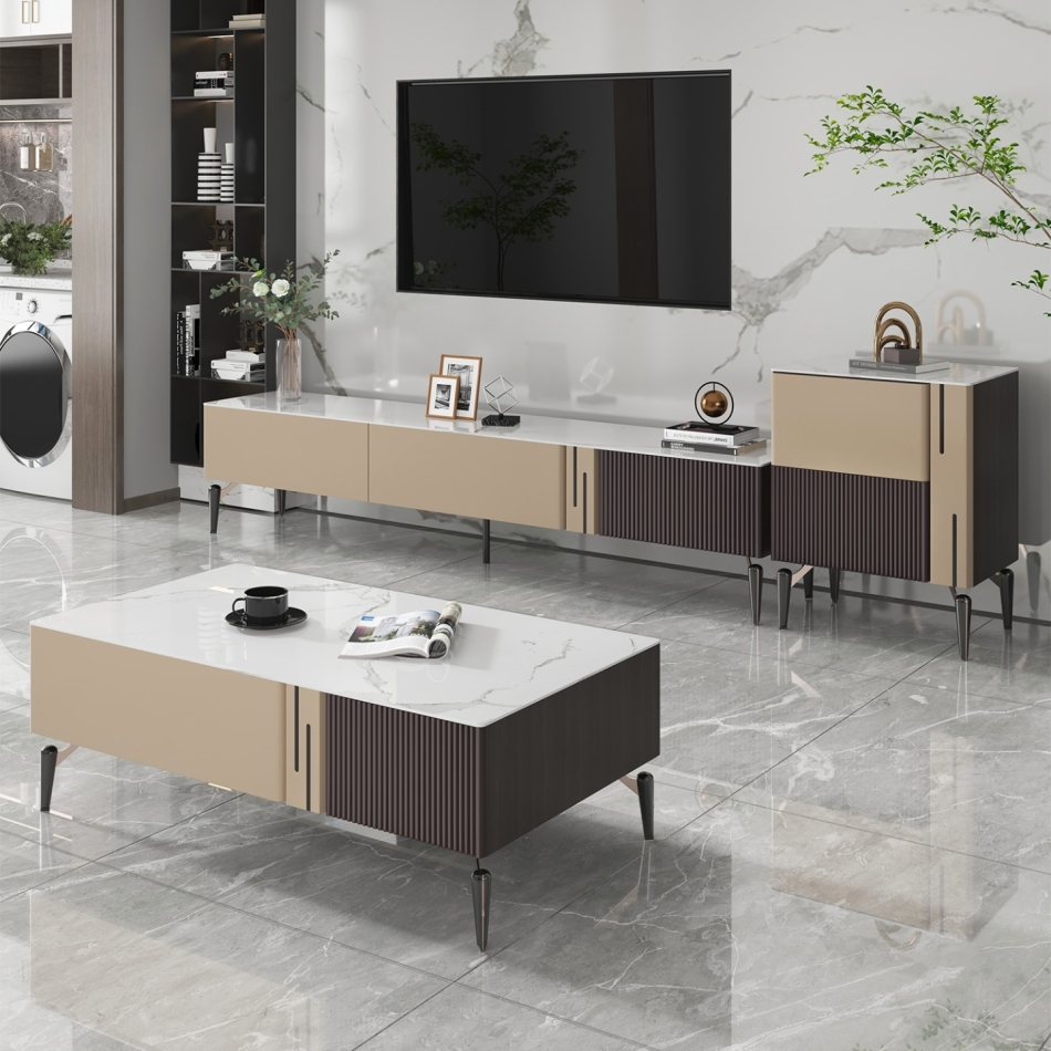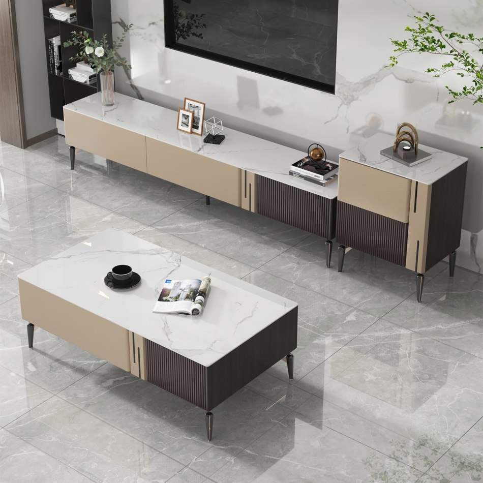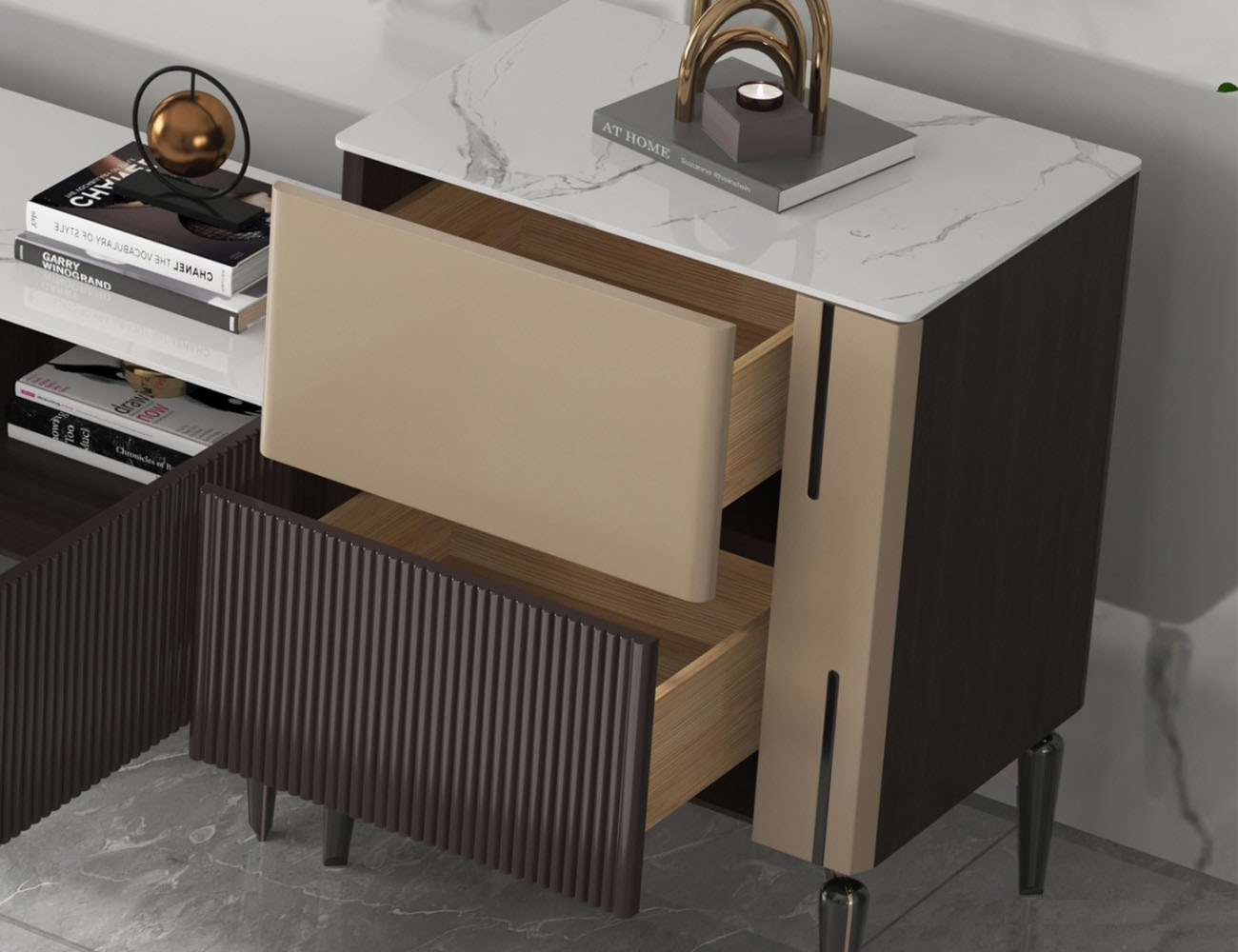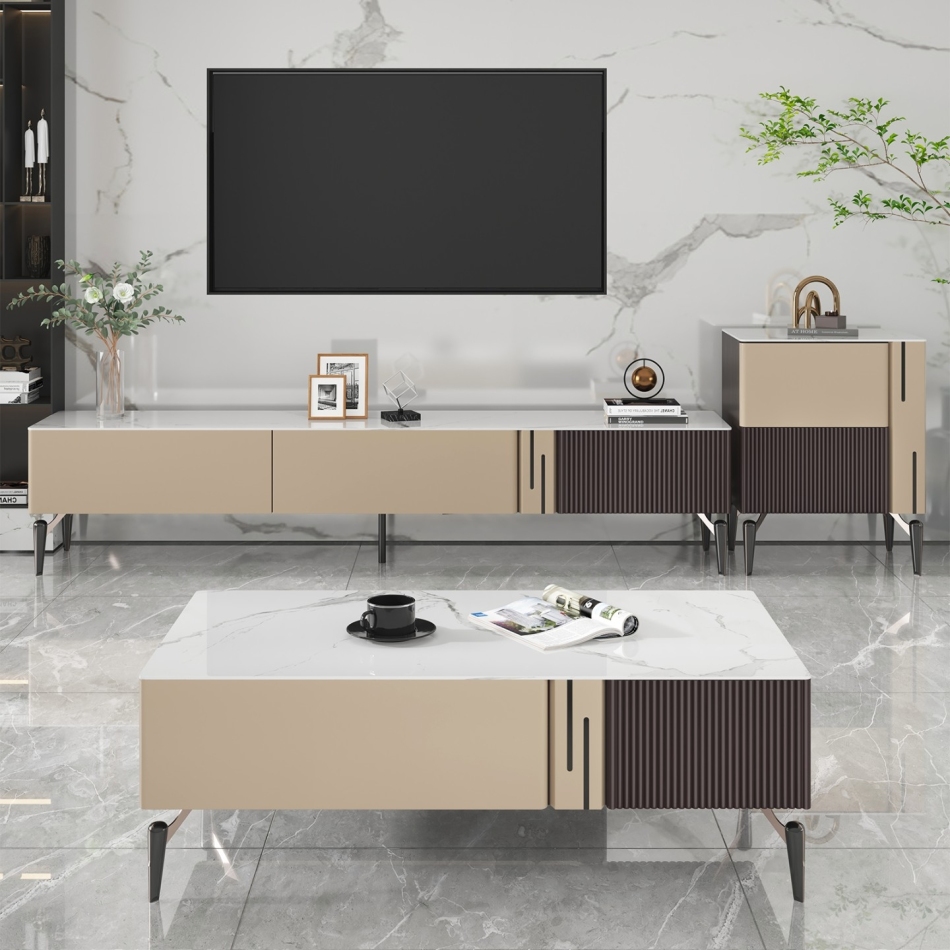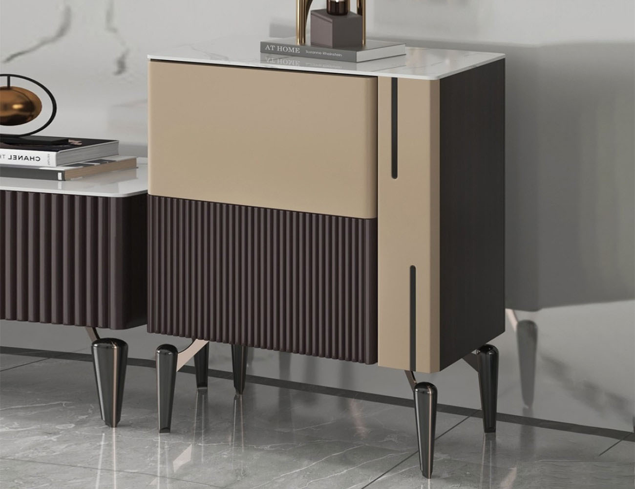 极简时尚亮光岩板客厅收纳储物边柜