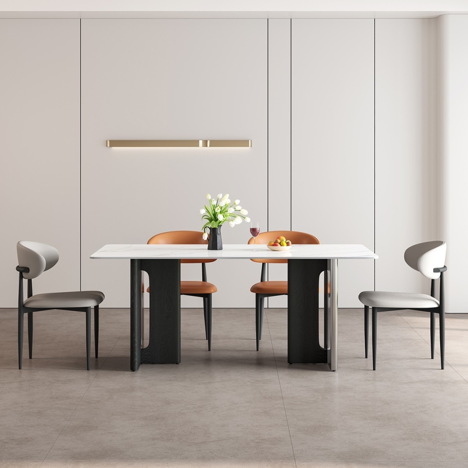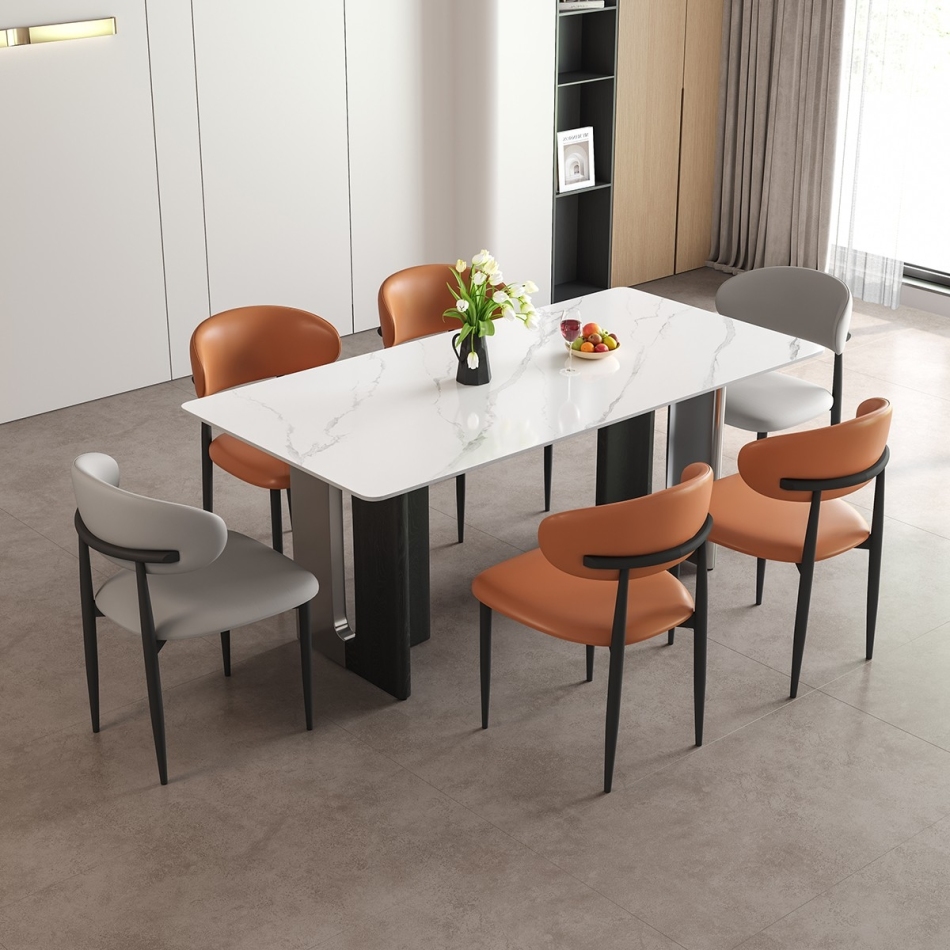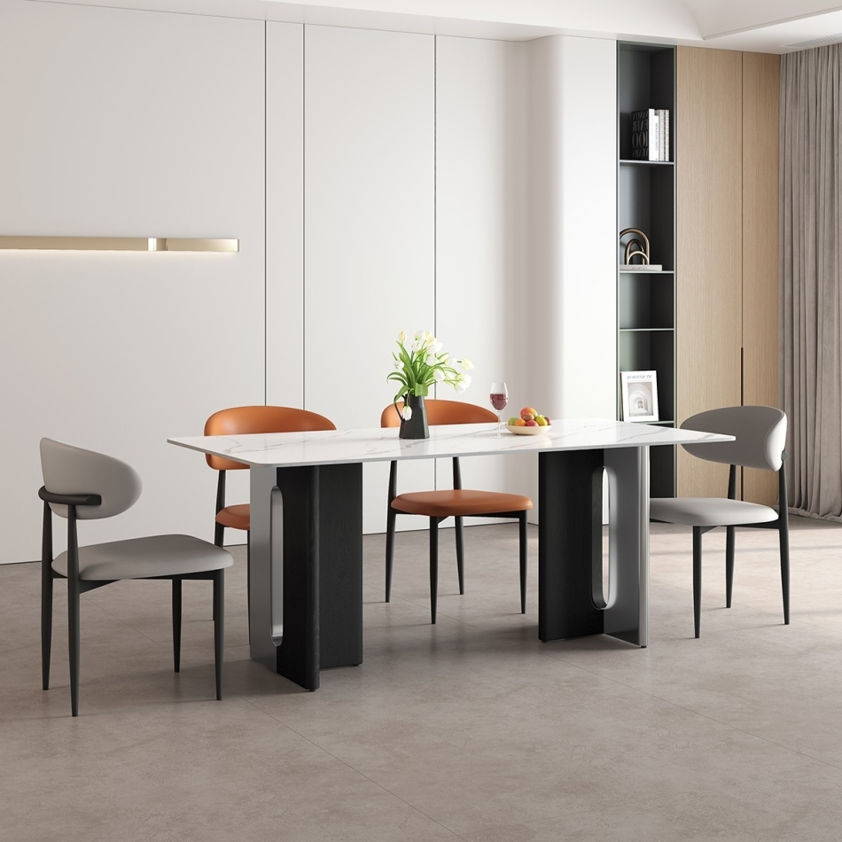 极简时尚长方形餐桌 家用简约12mm亮光雪山白岩板餐桌