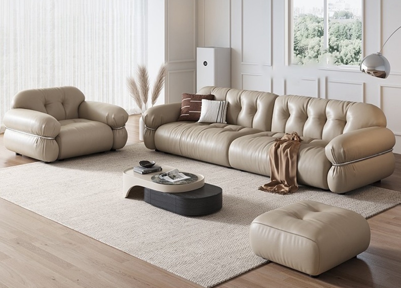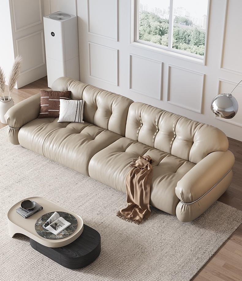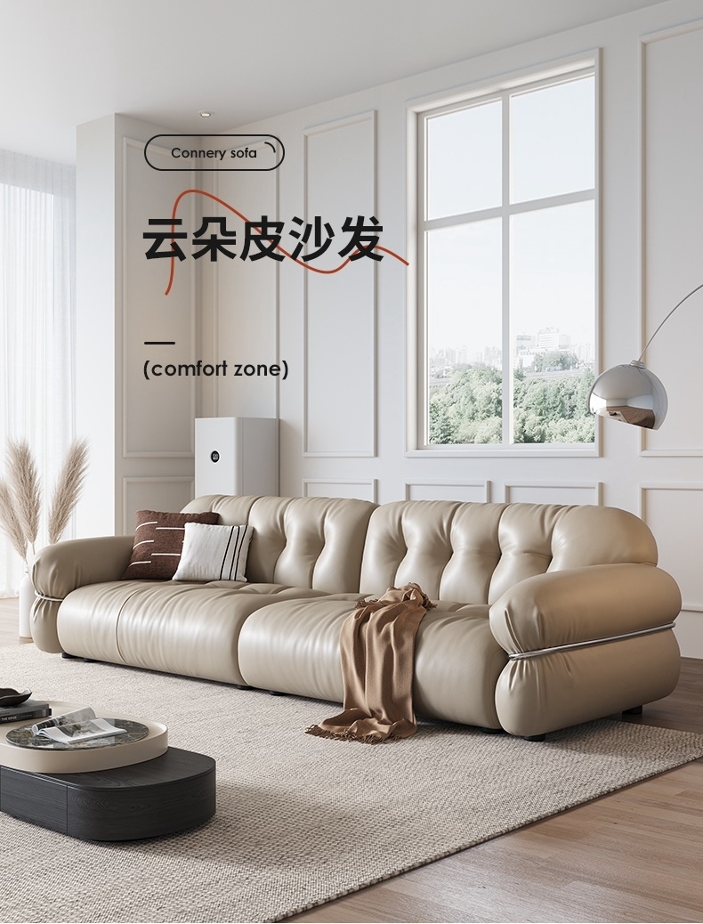 极简风云朵皮沙发 简约客厅仿真皮组合沙发