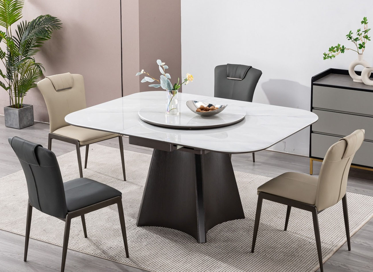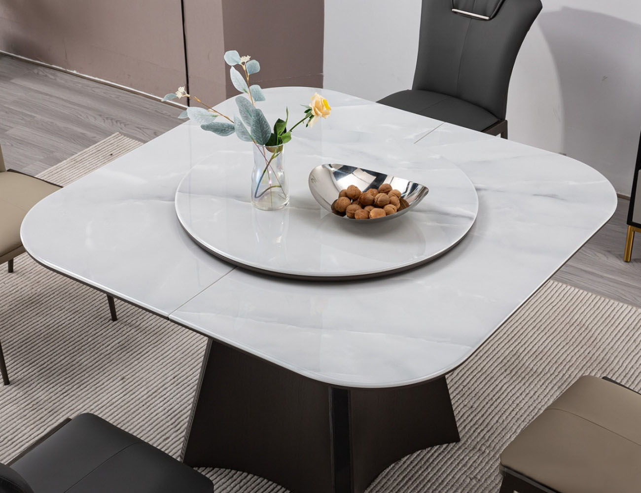 极简风冰岛玉微晶石餐桌家用小户型餐厅可伸缩折叠多功能餐桌