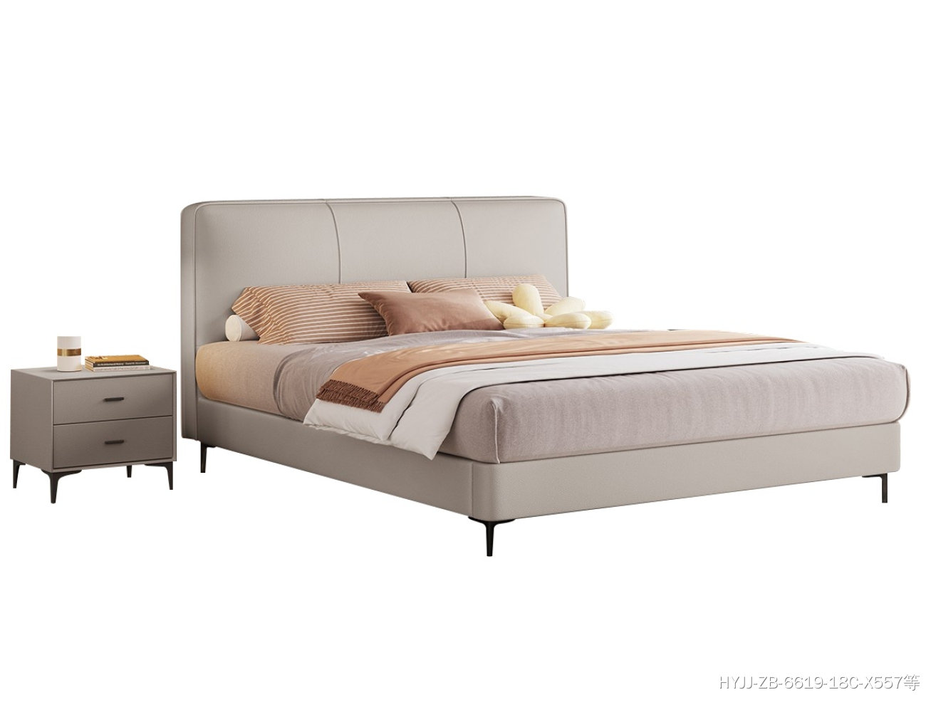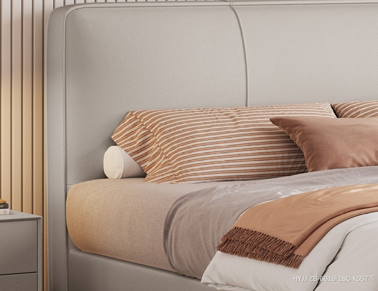 极简风卧室生态真皮双人床 意式简约家用齐边齐尾软包床