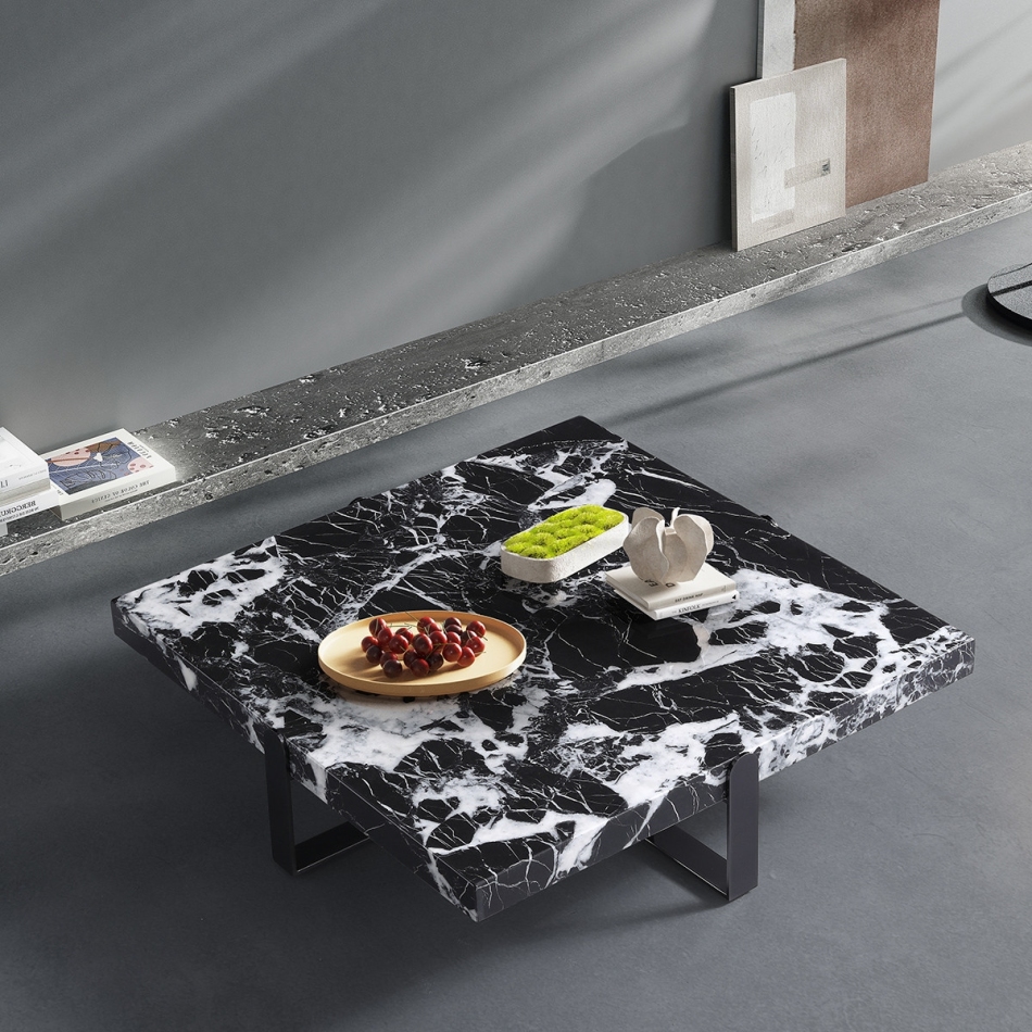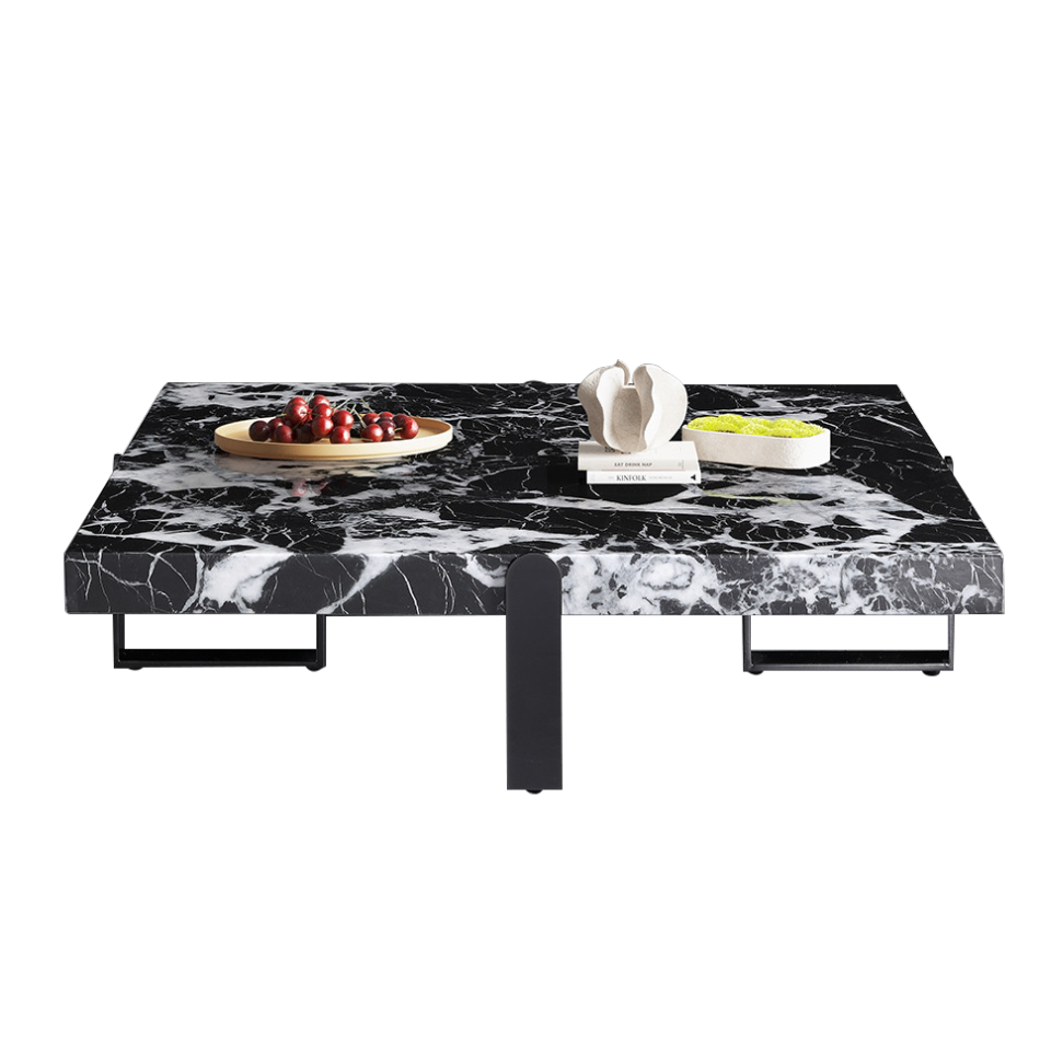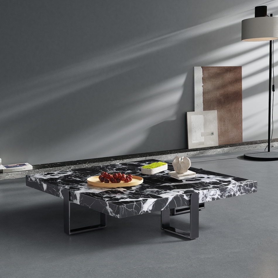 极简风宝格丽黑人造大理石客厅简约正方形茶几