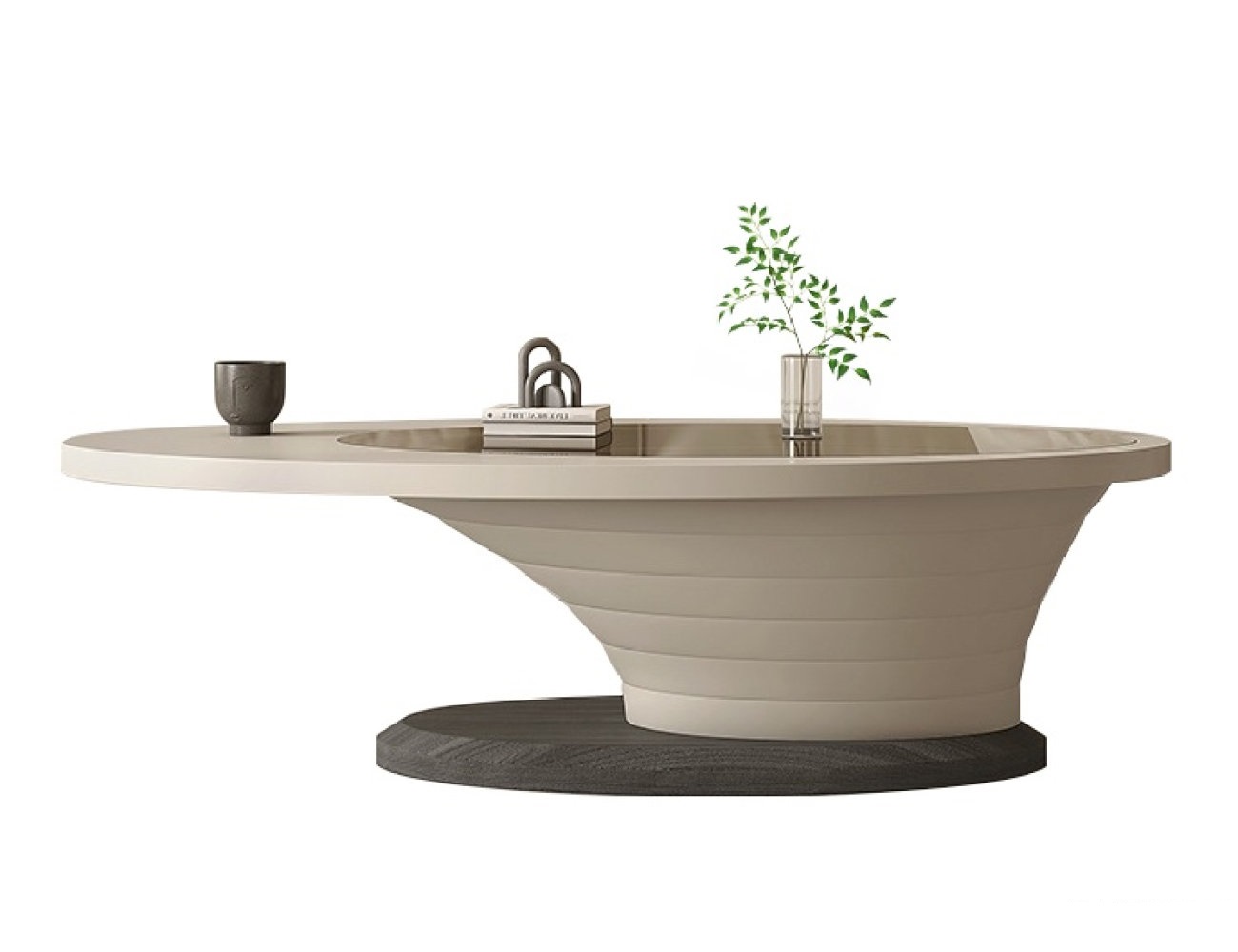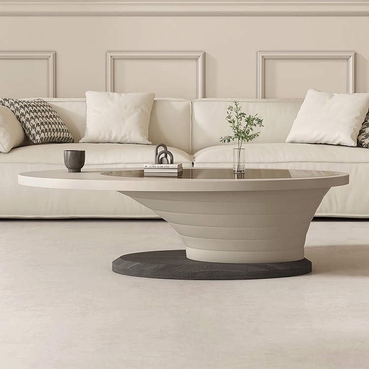极简风家用实木底板茶几 客厅8mm茶色钢化玻璃椭圆形茶几