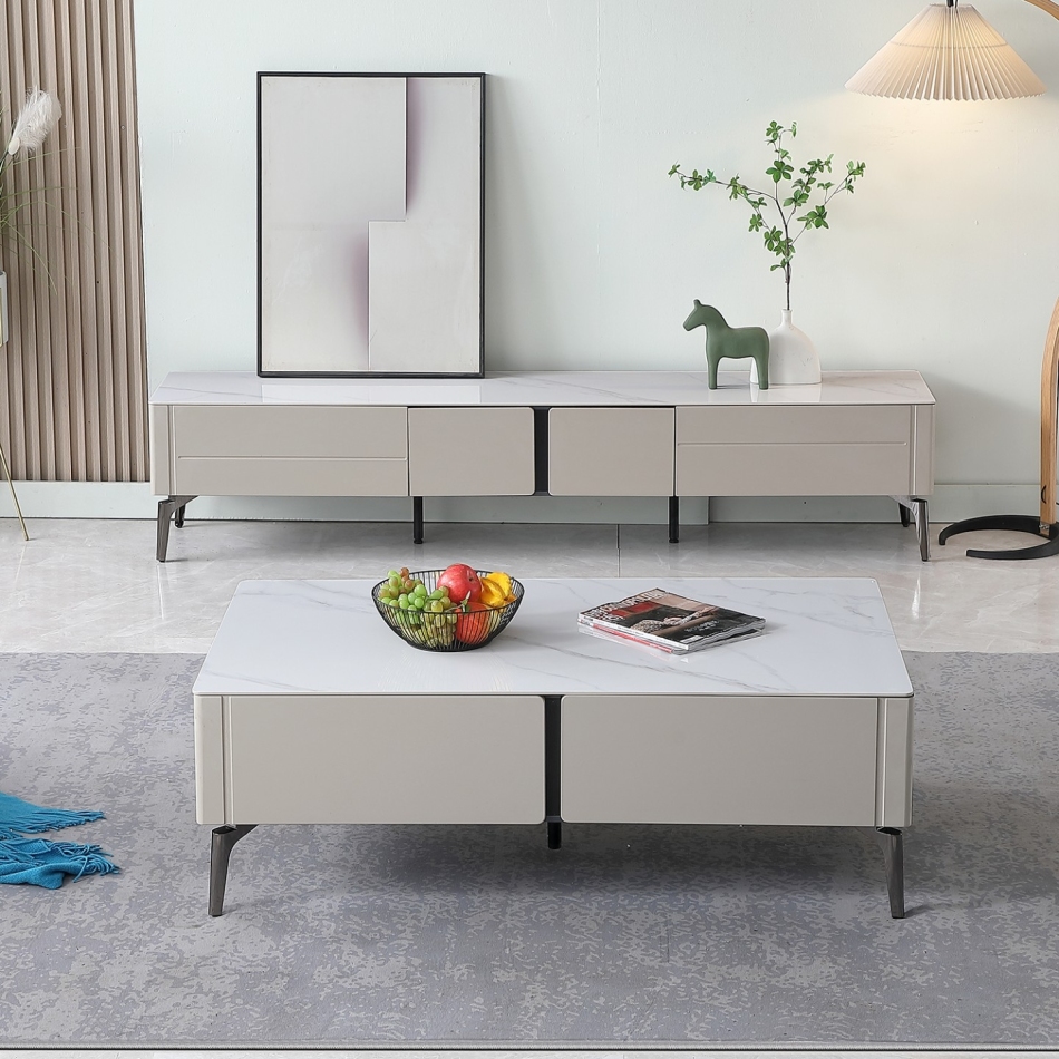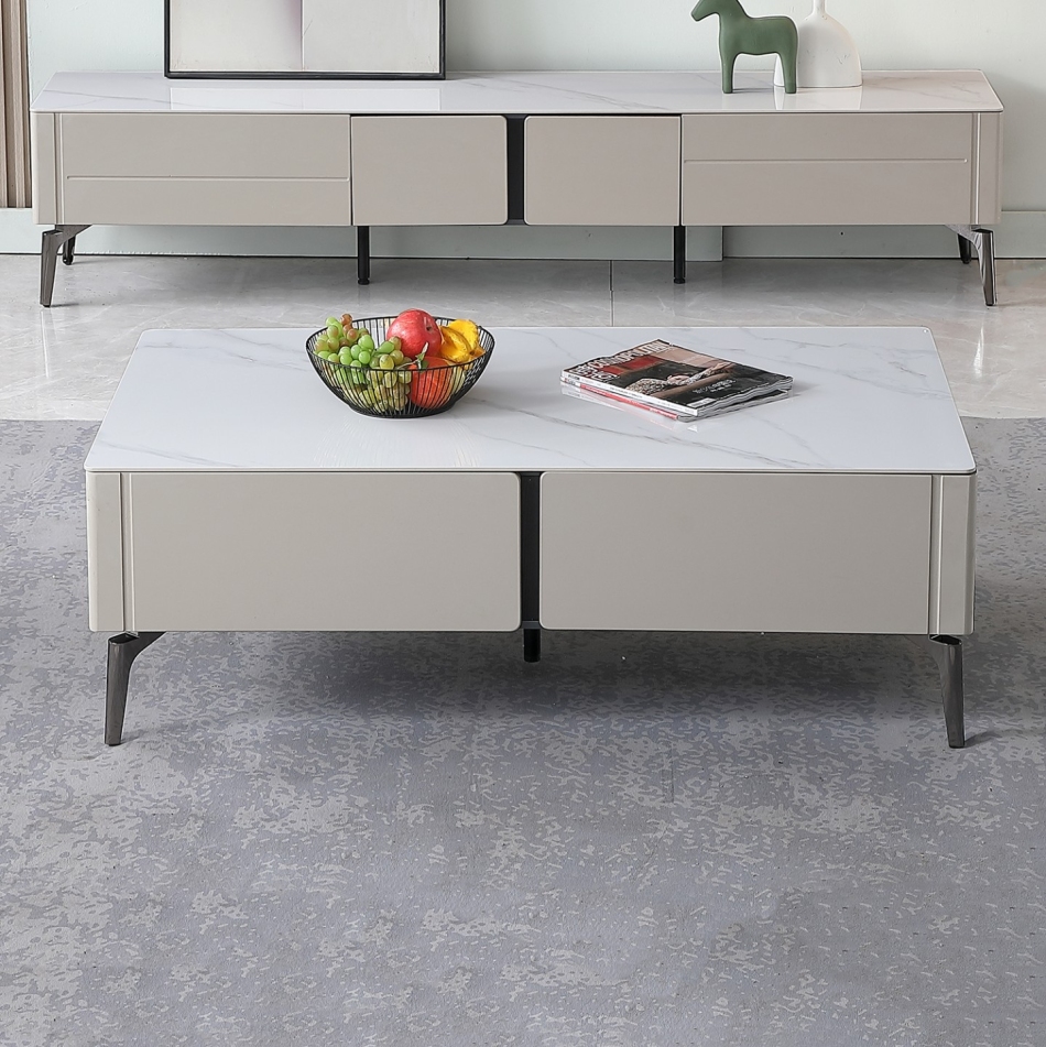 极简风家用客厅亮光雪山白岩板长方形收纳茶几