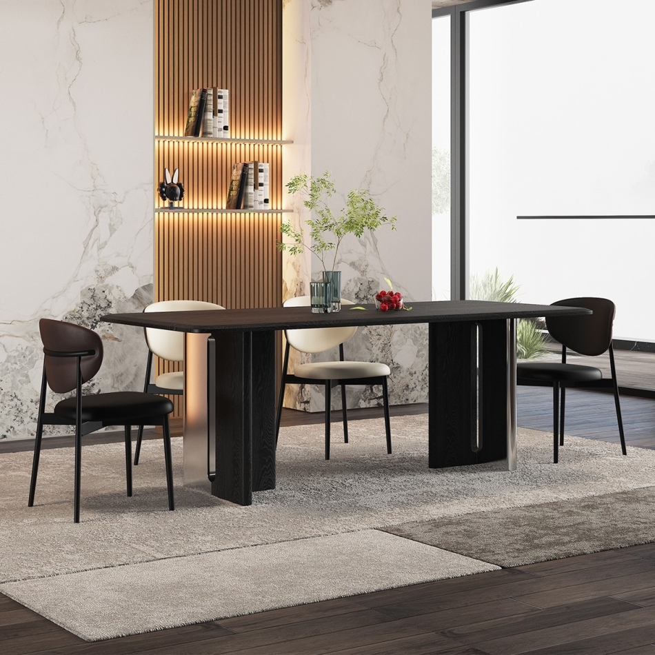 极简风家用镜面不锈钢底架+全实木天然白蜡木皮台面餐桌
