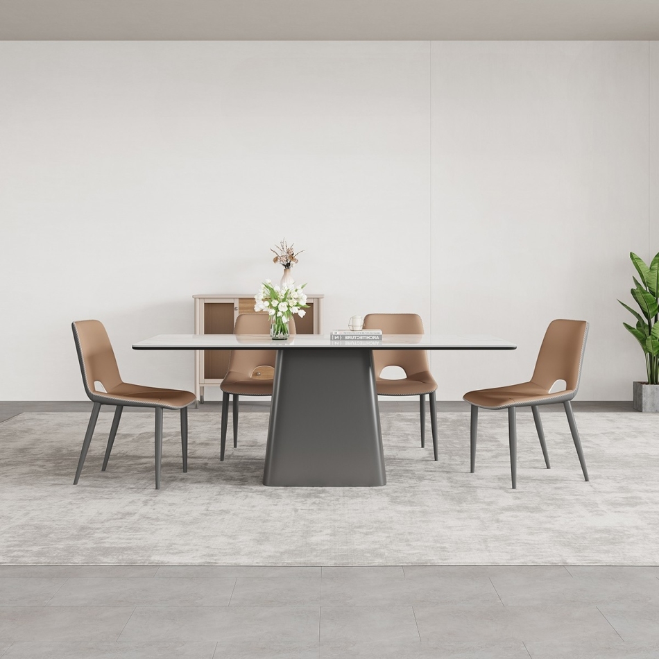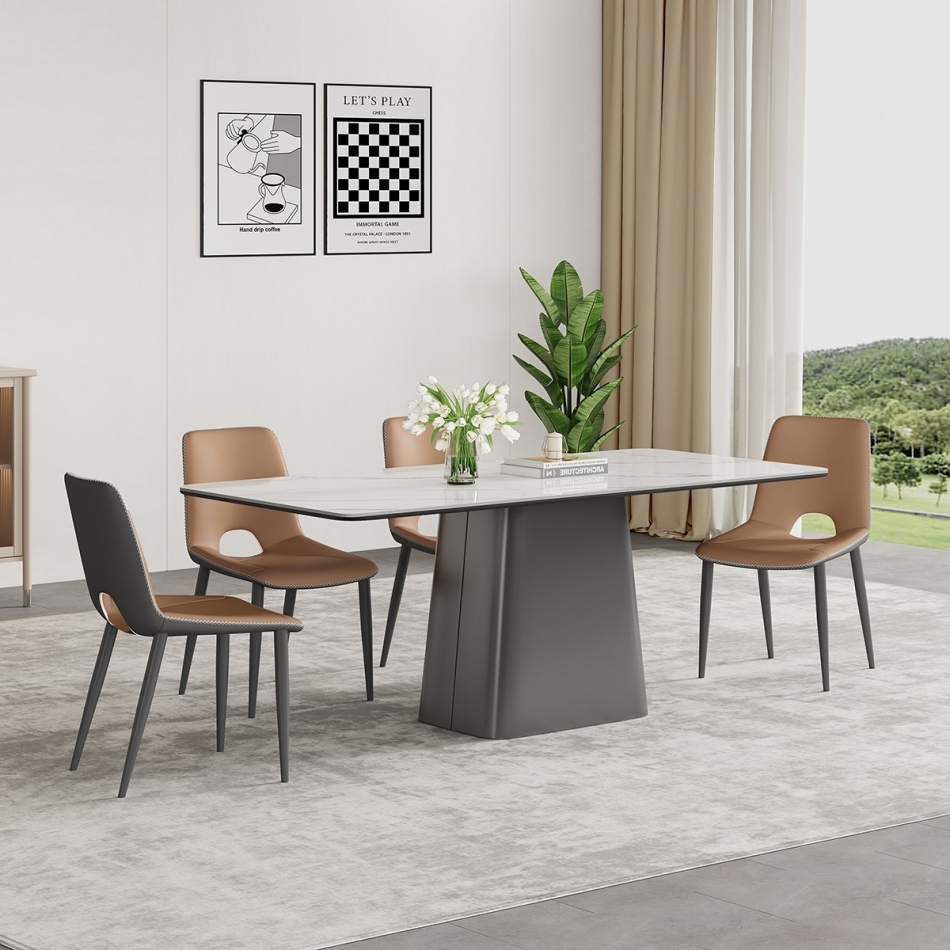 极简风时尚长方形餐桌 简约家用12mm亮光雪山白岩板餐桌