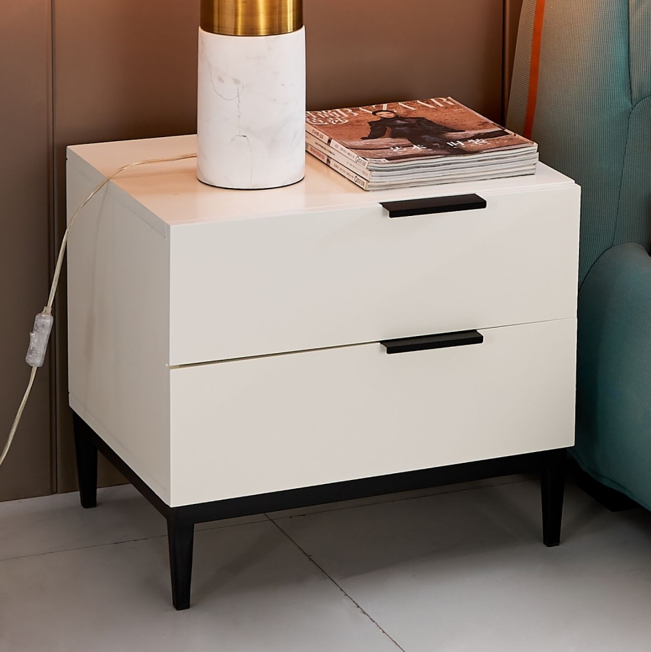 极简风格卧室床边柜 小户型家用油漆柜 米白色床头柜