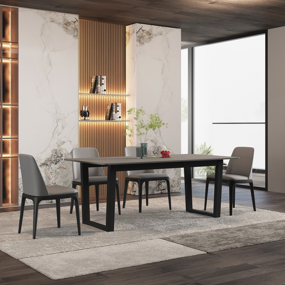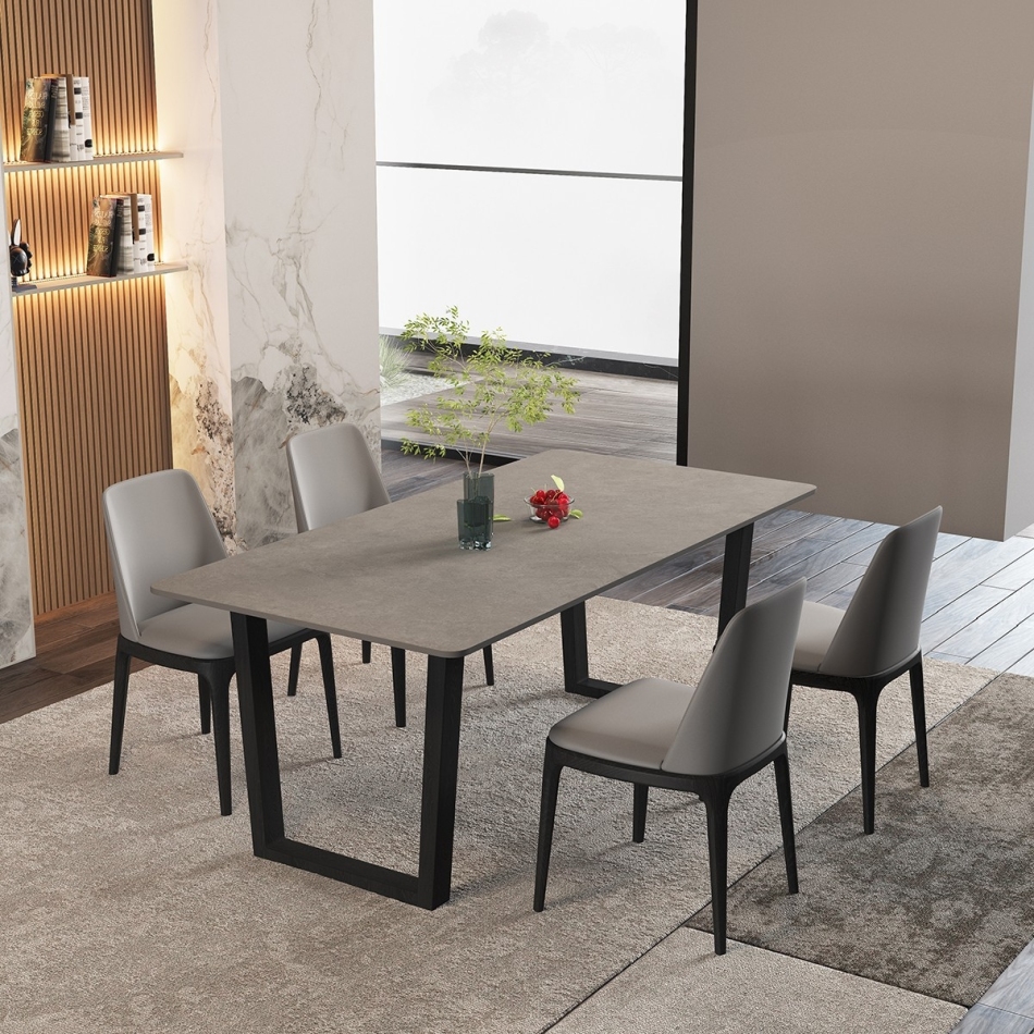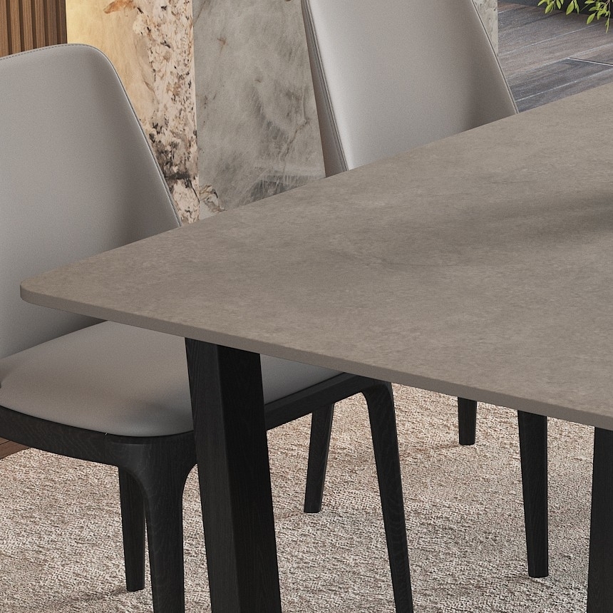 极简风格白蜡木餐桌 6人简约餐厅实木长方形哑光岩板餐台(维克浅灰)
