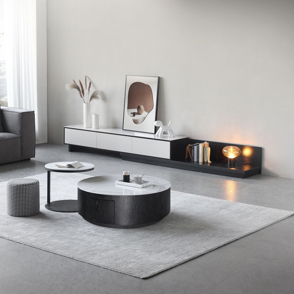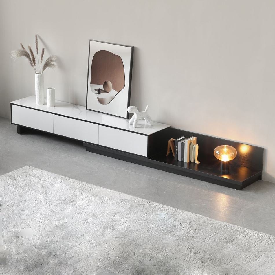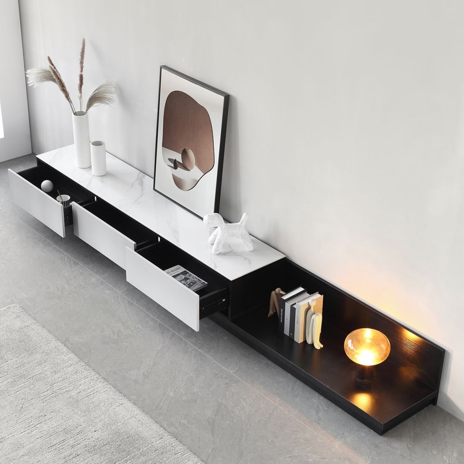 极简风格 小户型家用功能电视柜 客厅岩板伸缩地柜(雪山石)