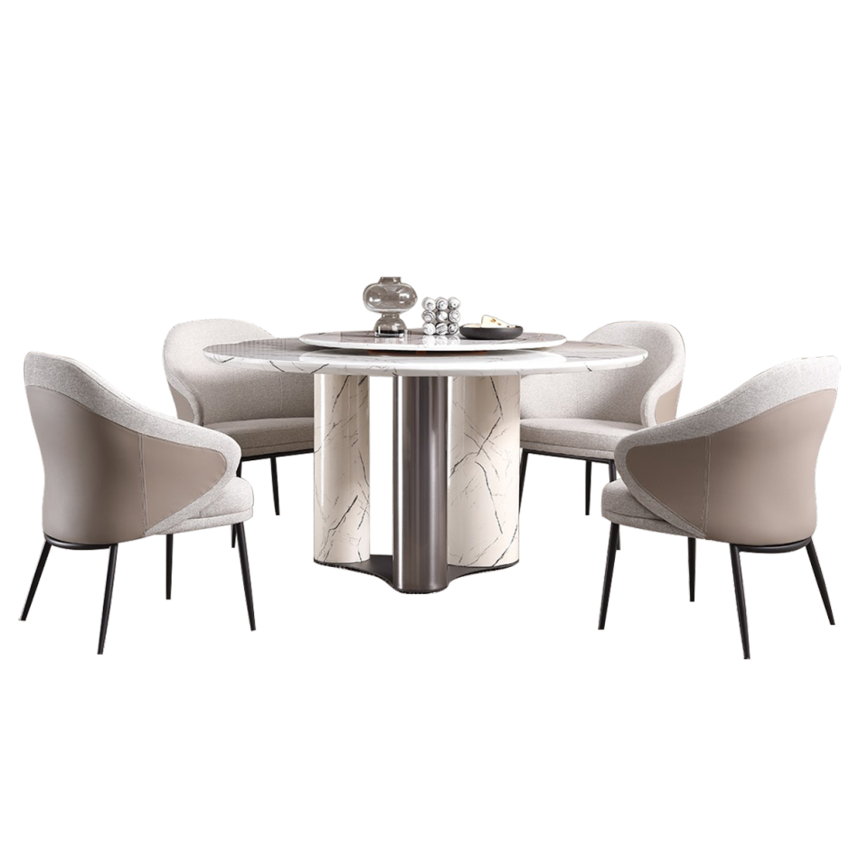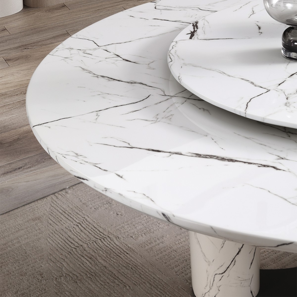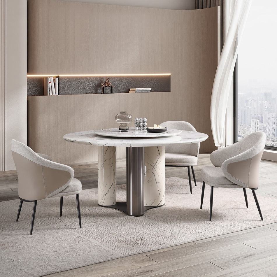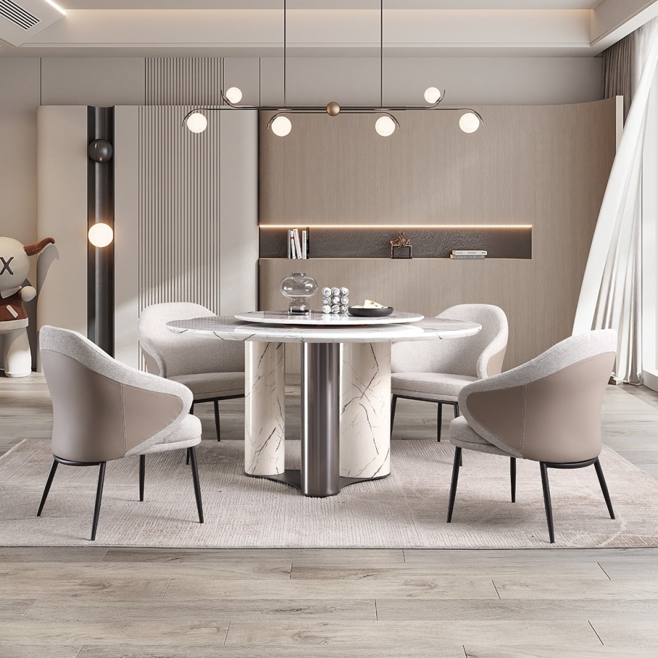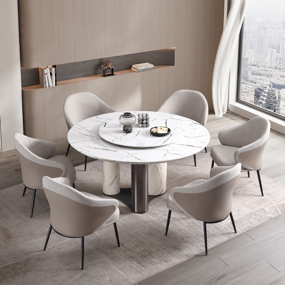 极简风格 餐厅家用雪山白人造大理石含转盘餐桌