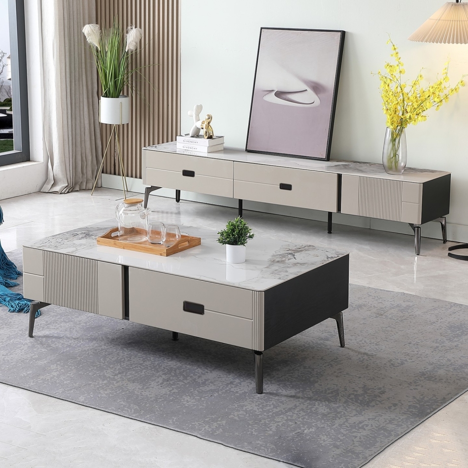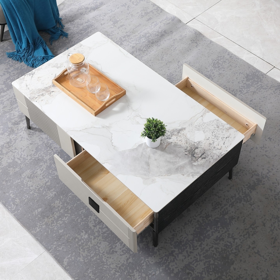 极简风格6mm亮光香奈儿岩板收纳几客厅长方形茶几