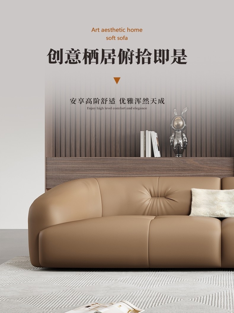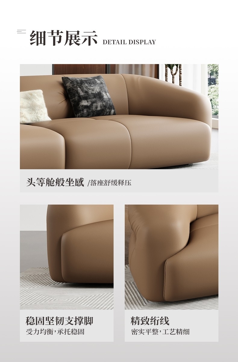 极简风轻压摔细纹意式1.2mm全头层黄牛皮家用沙发