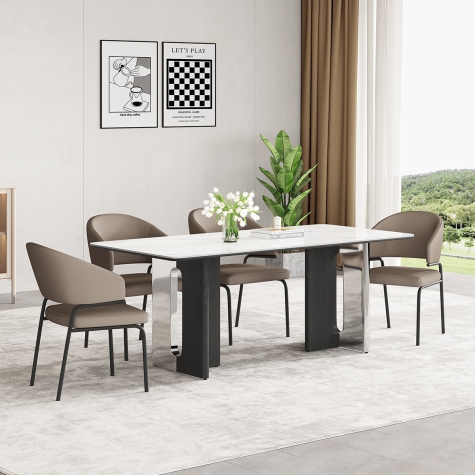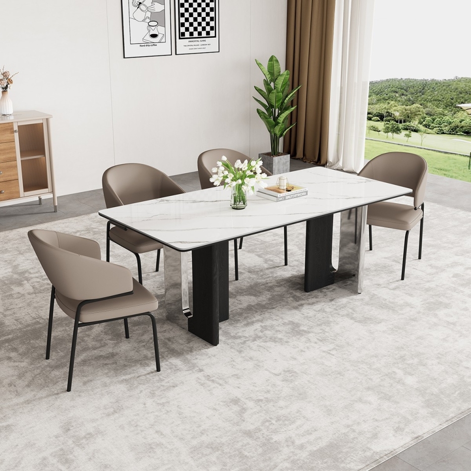 极简风12mm亮光雪山白岩板餐桌时尚个性长方形餐桌