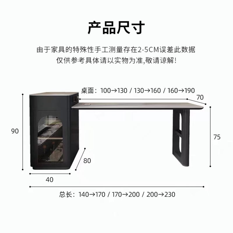 产品尺寸:【组合尺寸】长1400-1700*宽800*高900mm、【分开尺寸】桌面:长1000-1300*宽700*高750mm;柜体:长400*宽800*高900mm