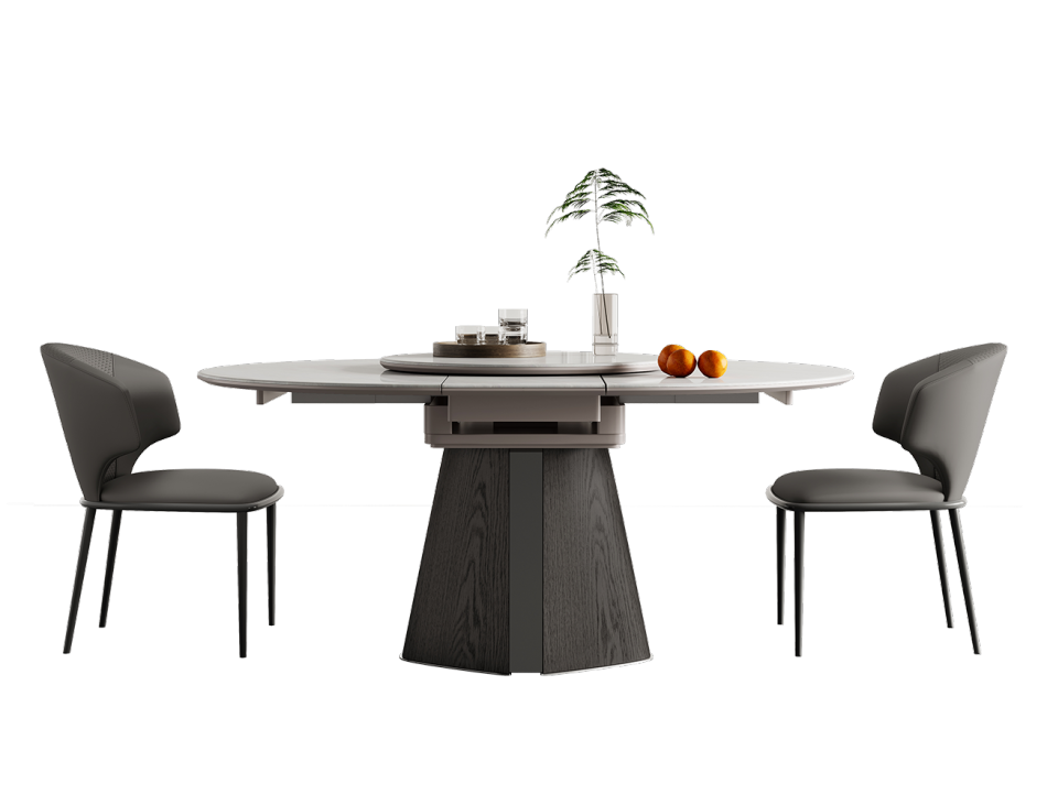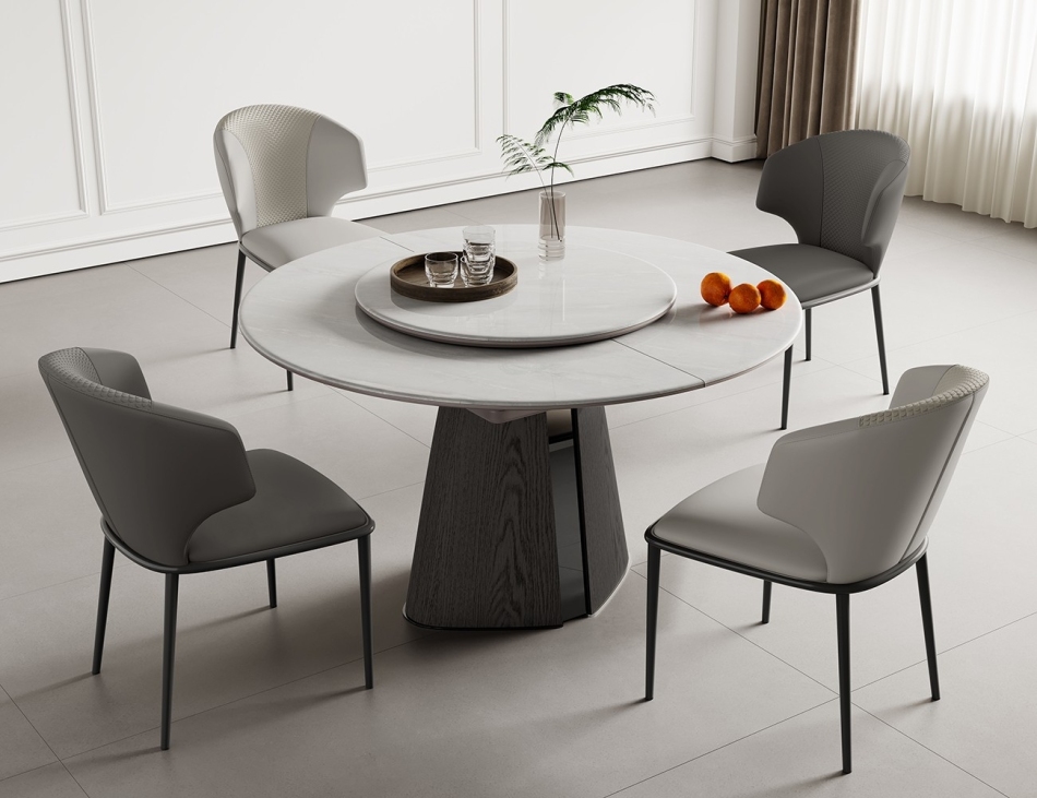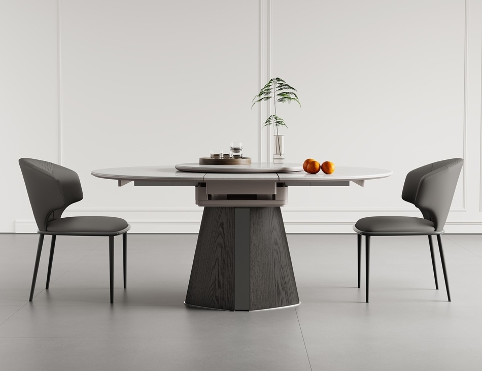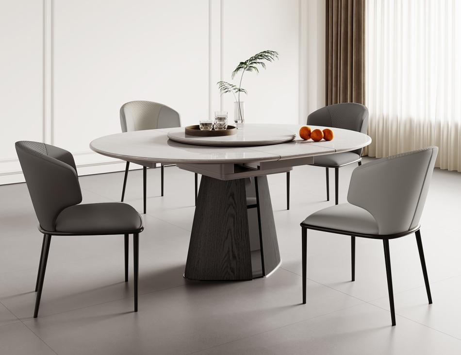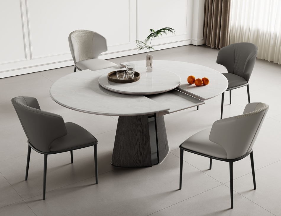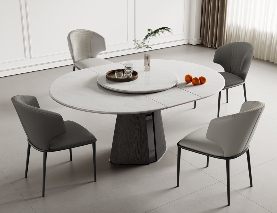 极简8mm微晶石台面餐桌 家用功能可伸缩北极冰玉带转盘餐台