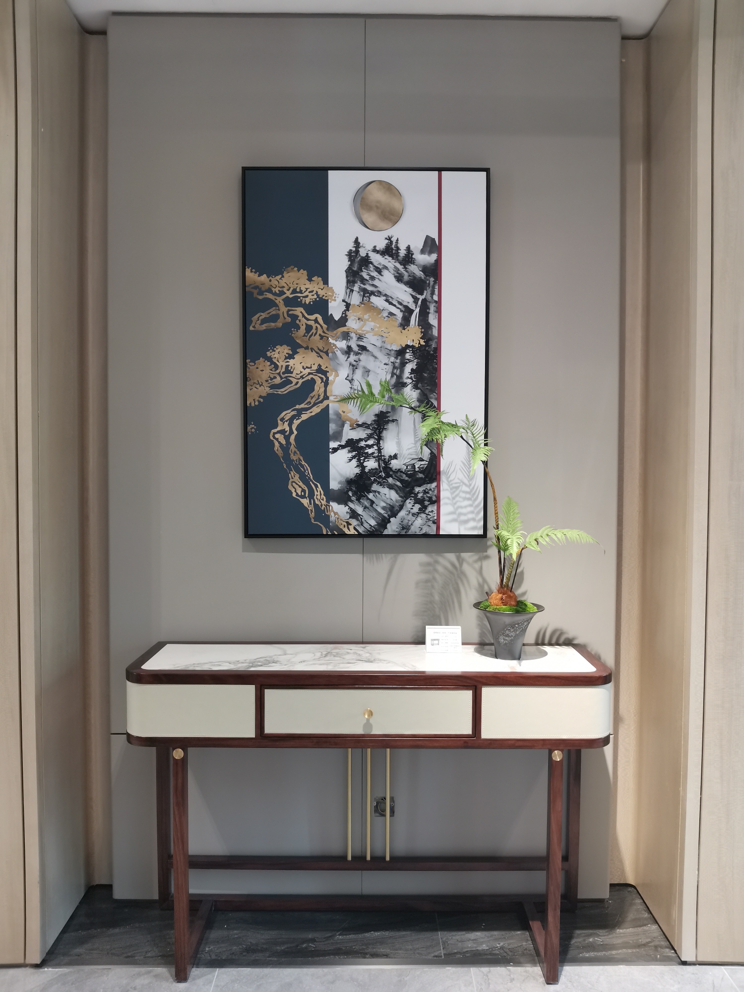 檀珺系列 新中式客厅玄关主材黑檀乌金木家用岩板面玄关桌