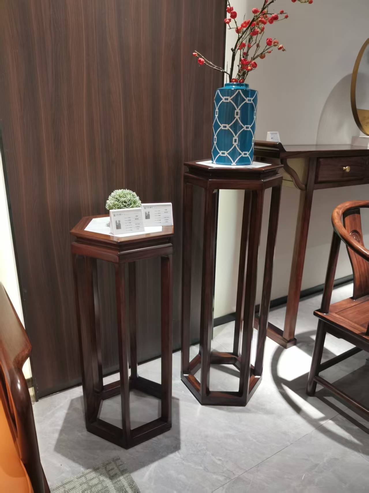 檀珺系列 新中式家用客厅茶室阳台主材黑檀乌金木岩板面花几花架