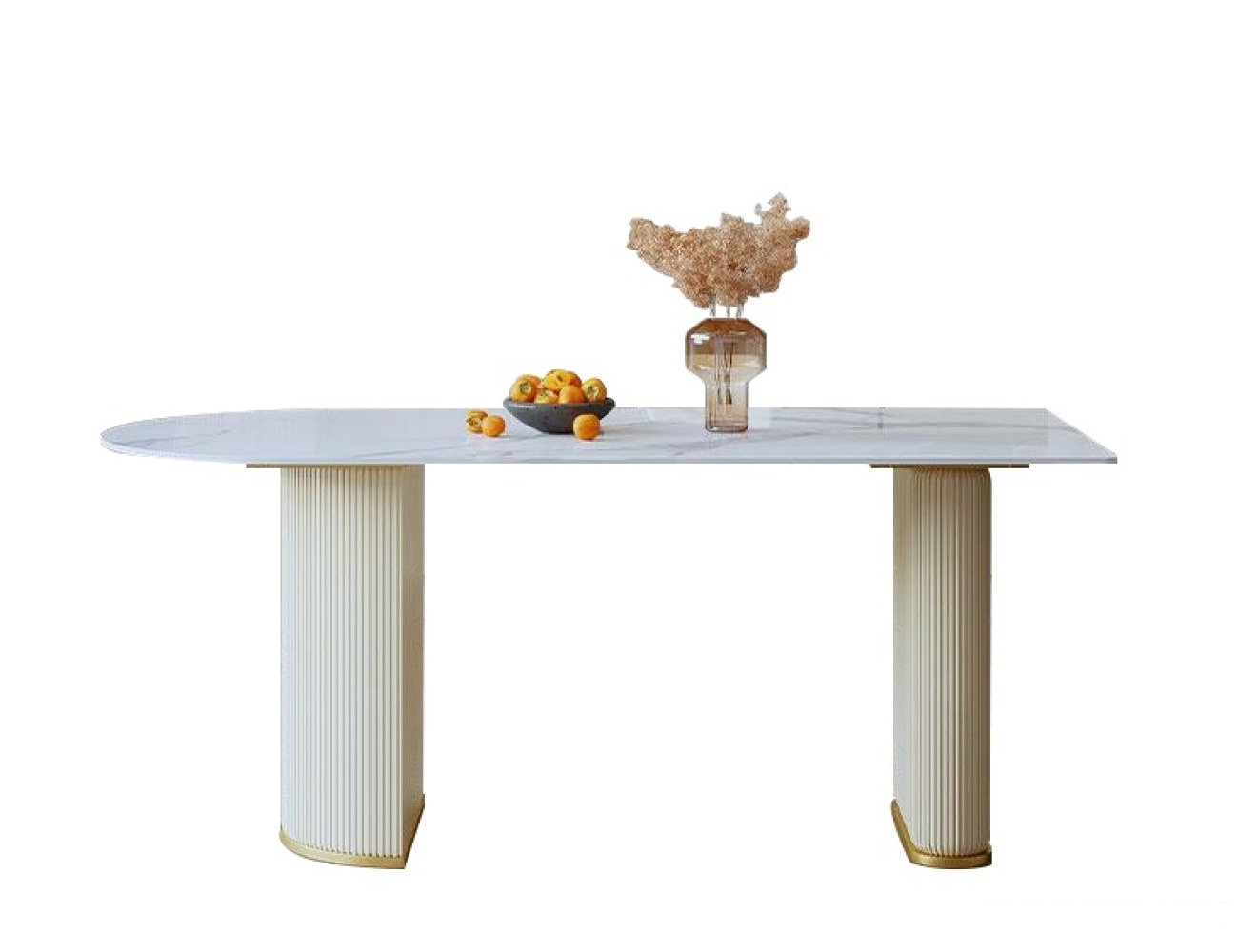 港式轻奢岛台餐桌家用个性亮光岩板餐桌(雪山石)