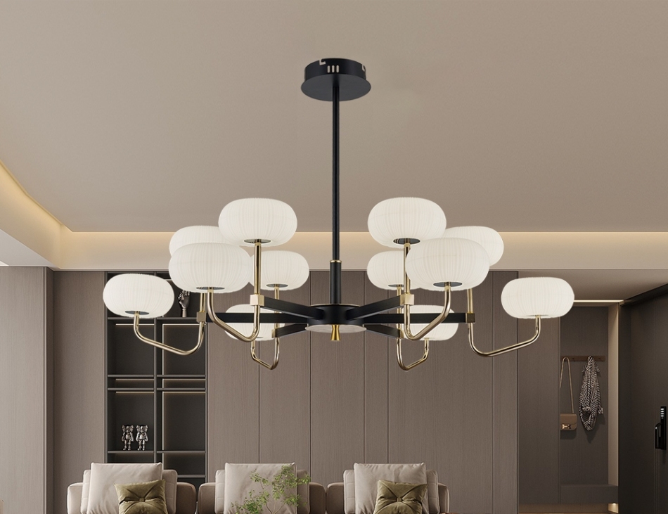 现代简约铁艺吊灯亚克力三色变光主灯客厅灯具