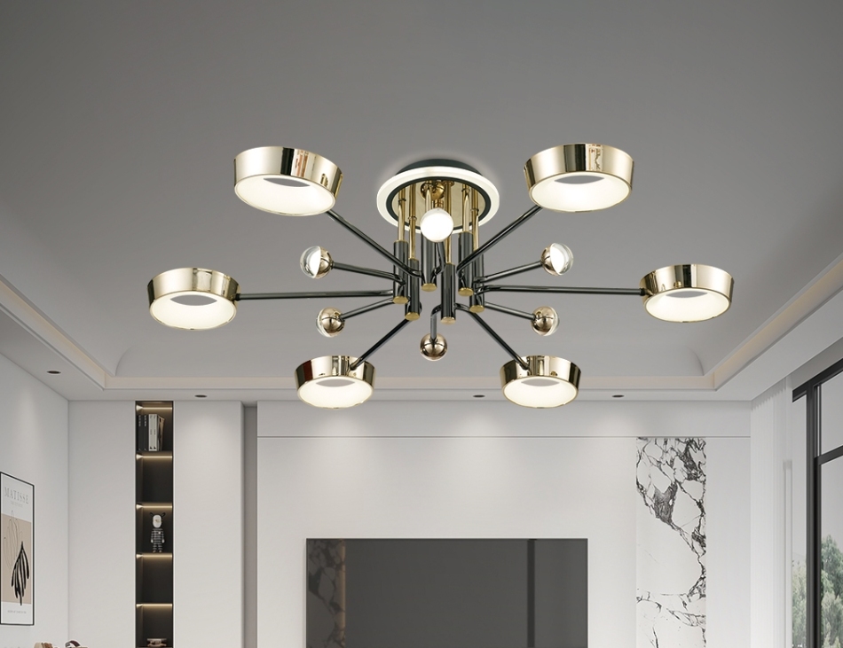 现代简约铁艺吊灯玻璃三色变光主灯客厅灯具