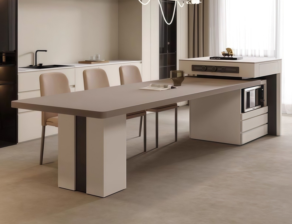 简约大气家用餐厅餐桌意式极简5cm吊边岩板桌面可伸缩带充电一体岛台