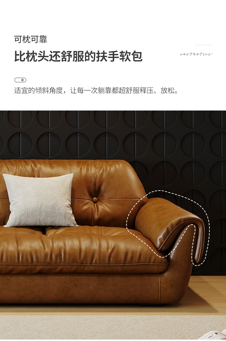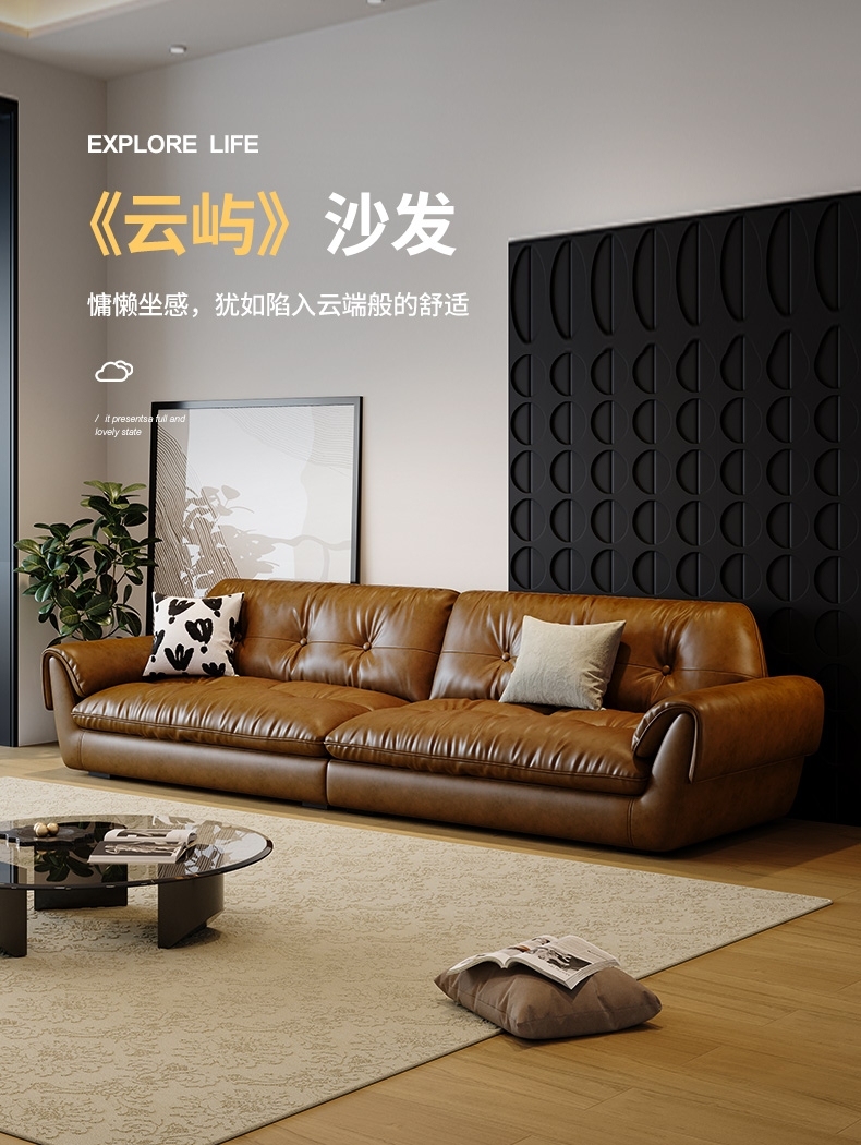 简约客厅云屿沙发 中古风家用生态亮光油蜡真皮组合沙发