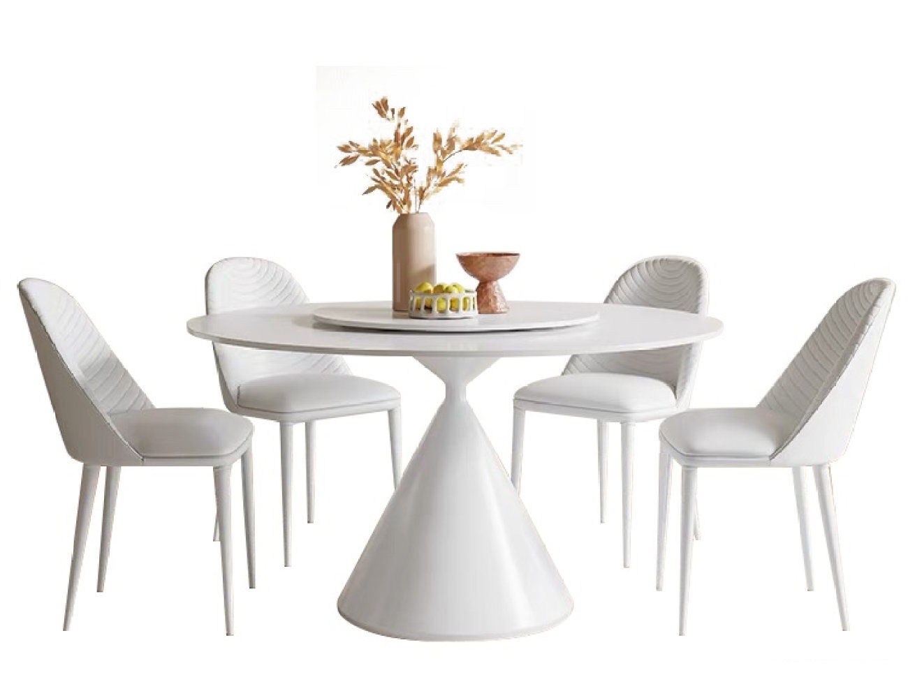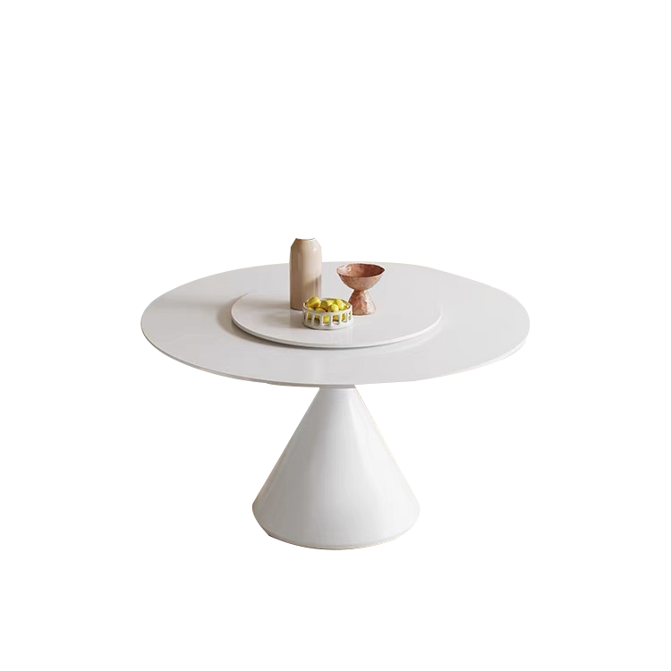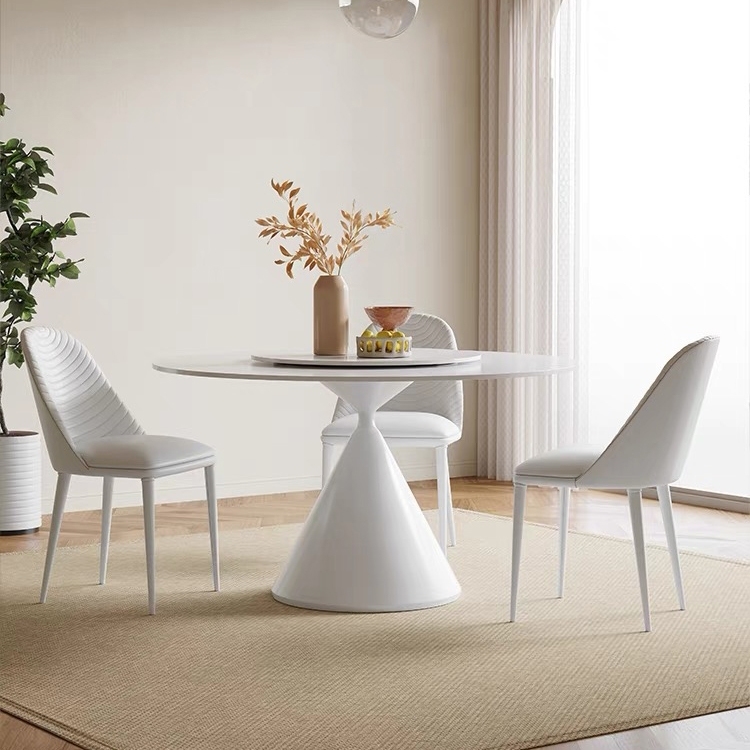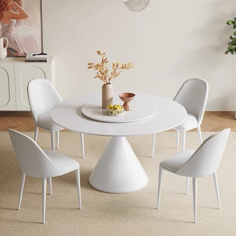 简约家用岩板餐台 奶油风餐厅旋转含转盘餐桌